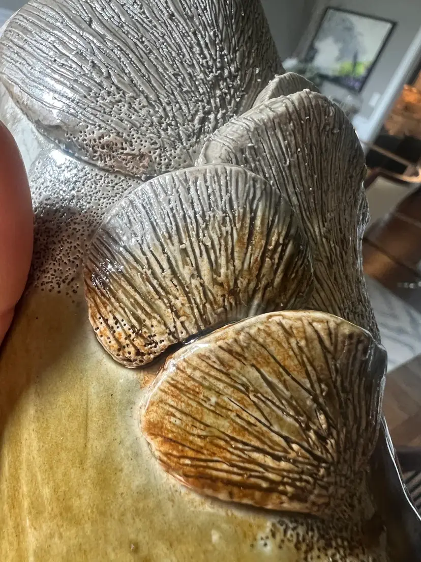 The glazing!!!! The details!!!! The attention to detail !!!!! The craftsmanship !!!! Amazing!!!! Signed on the bottom by the artist I believe it reads either CAIT or possibly CARL. I chips or cracks - just goodness!