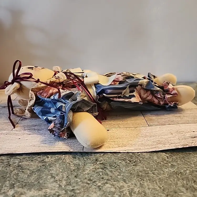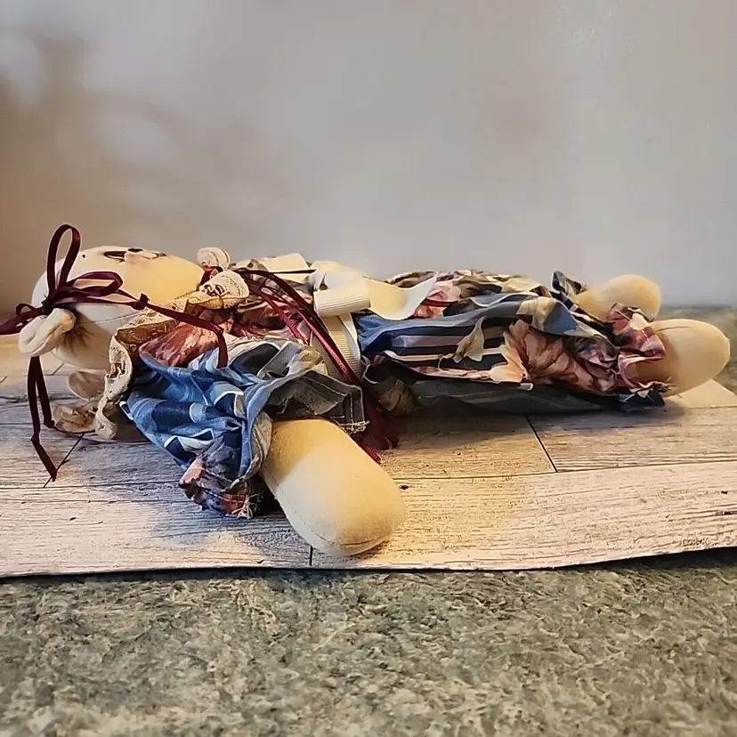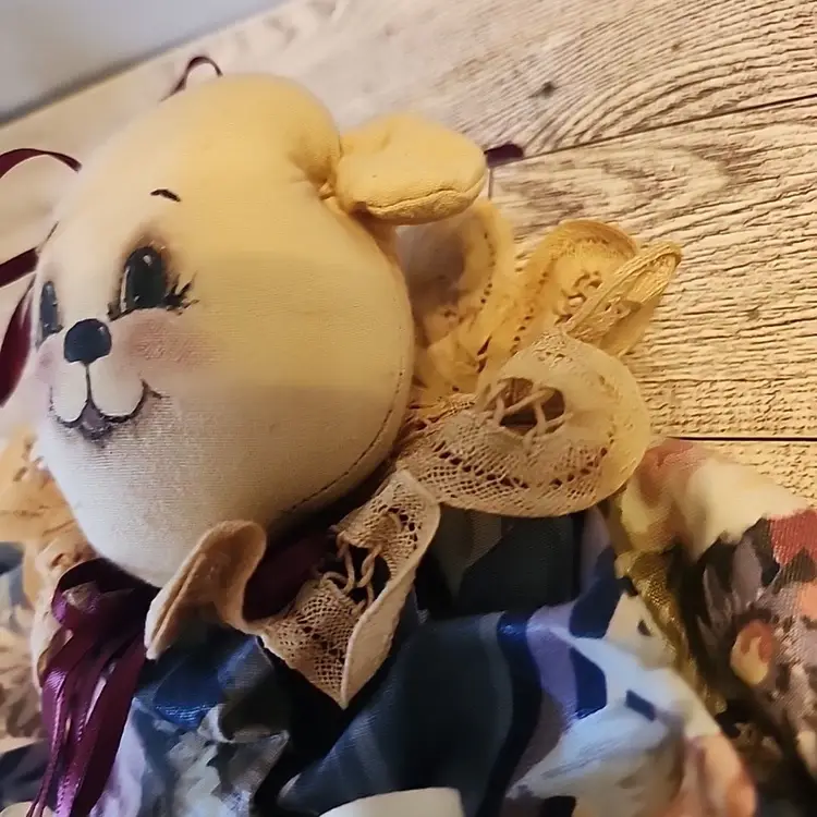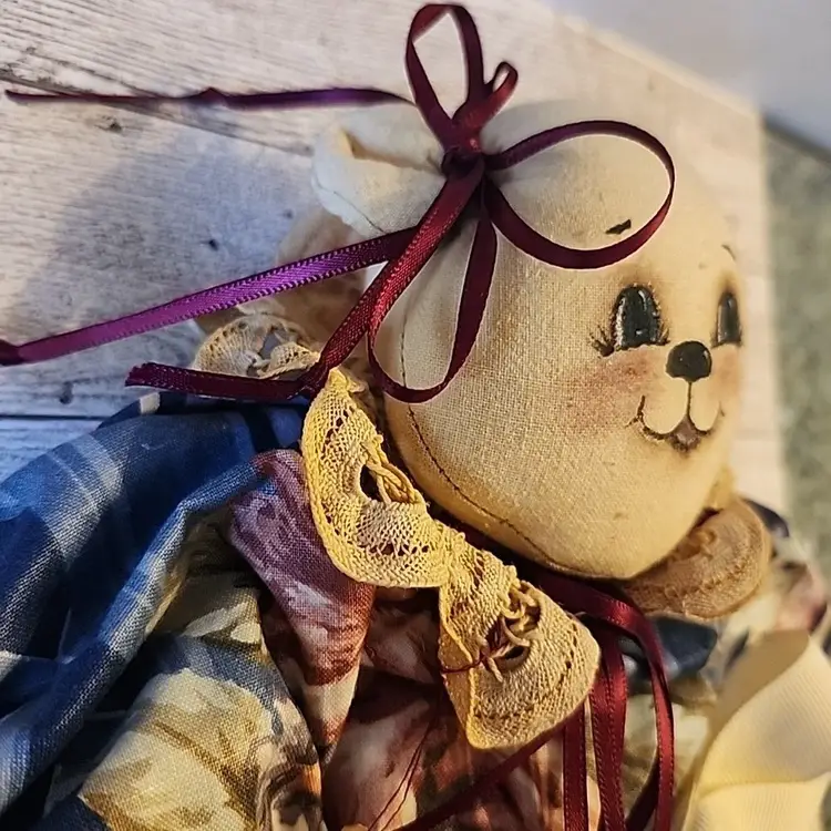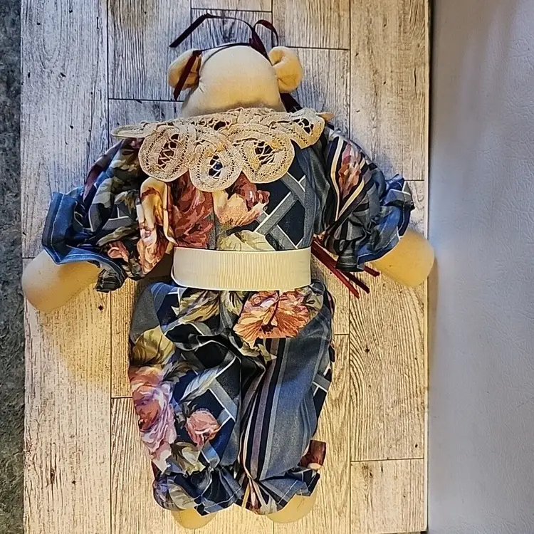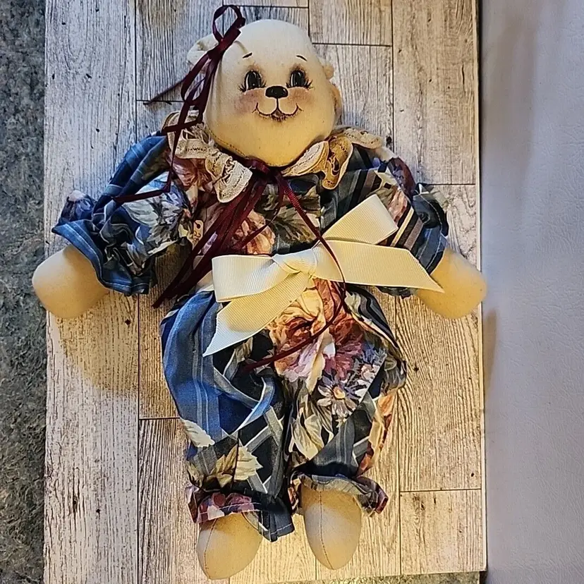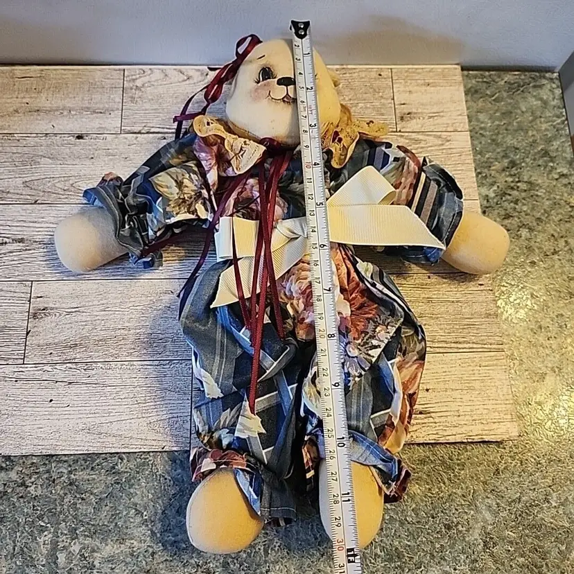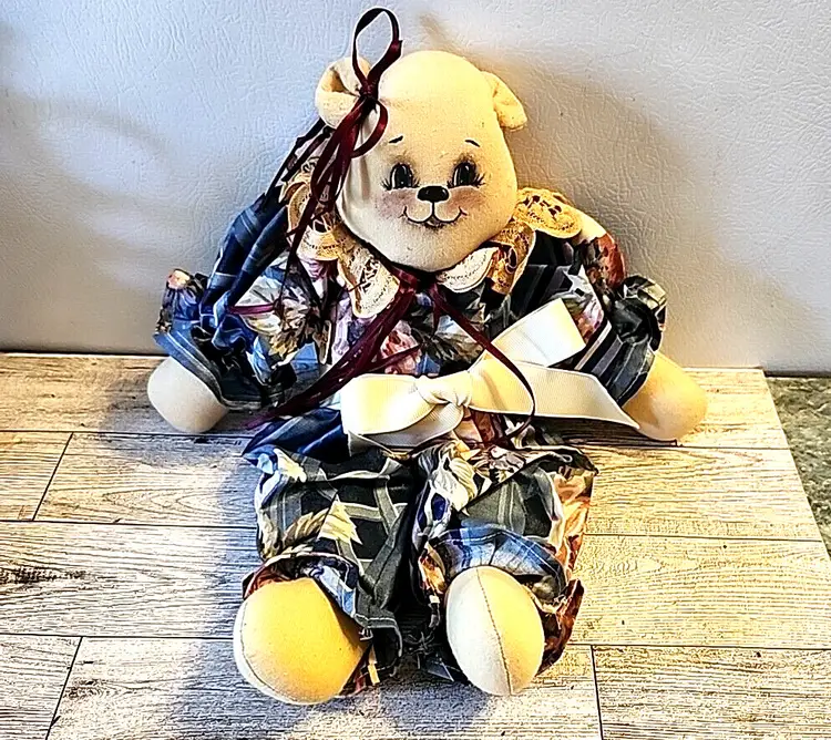 – Features: OOAK, Surface Washable, Unboxed, With Clothes – Number of Items: 1 – California Prop 65 Warning: No warnings – Custom Bundle: No – MPN: Does not apply – Personalize: No – Handmade: Yes – Age Level: 17 Years & Up – Time Period Manufactured: 1980-1989 – Animal Species: Bear – Item Height: 12 in – Occasion: All Occasions – Vintage: Yes – Size: 12 in – Material: Cloth, Fabric, Cotton – Bear Color: Beige – Year Manufactured: 1980 – Eye Color: Blue – Brand: Handmade – Antique: No – Signed: No – Original/Licensed Reproduction: Original – Unit of Sale: Single Unit – Theme: Girl – Type: Stuffed Animal – Items Included: Bow, Clothing
