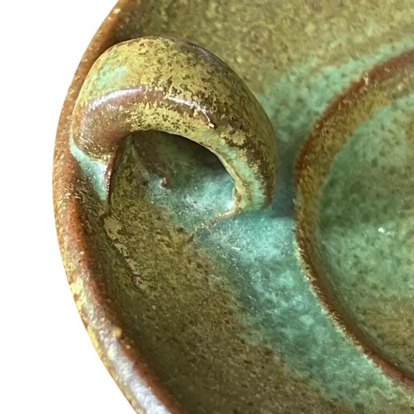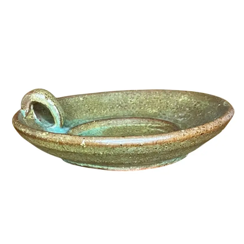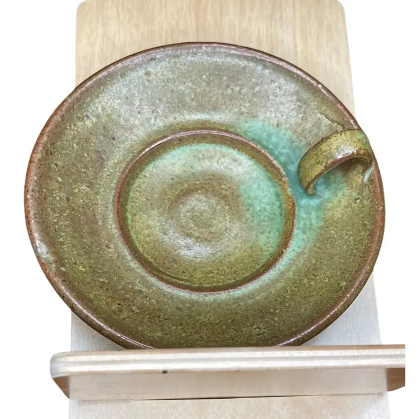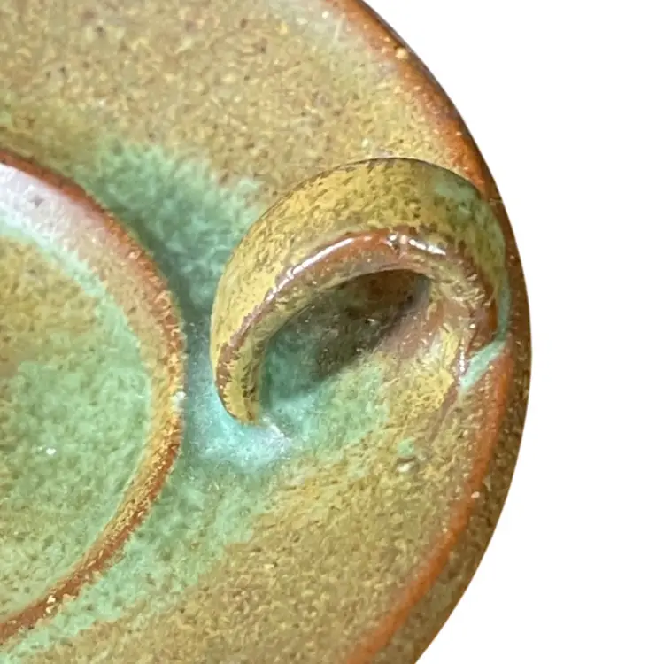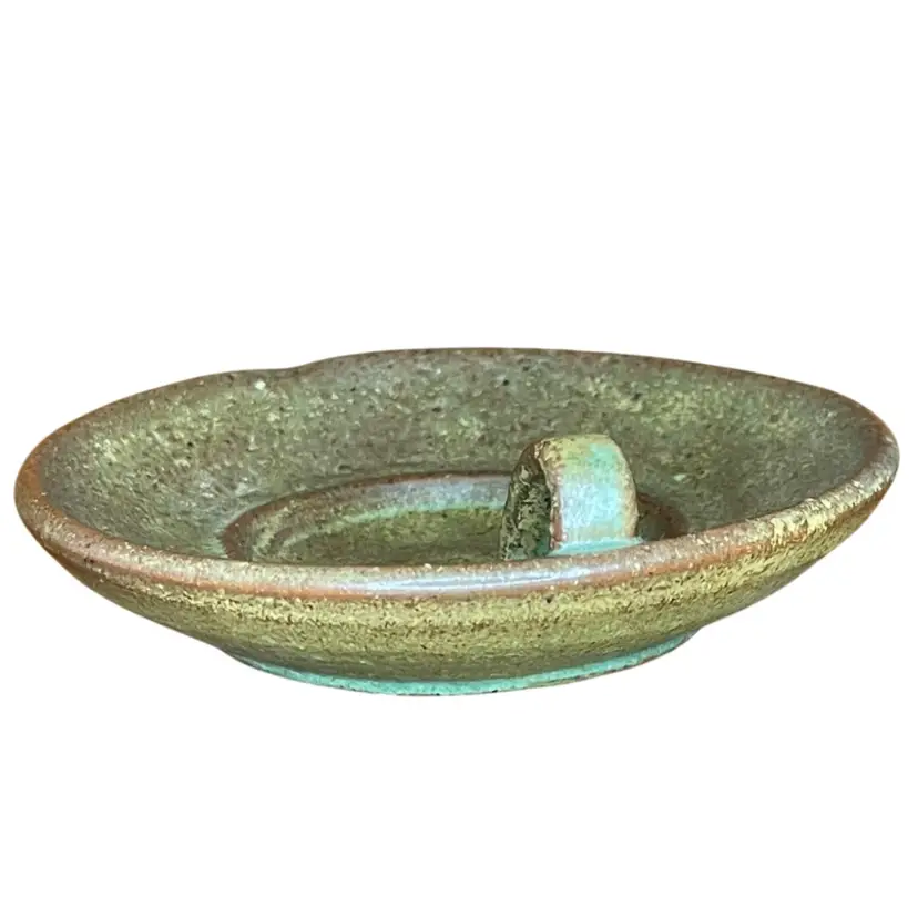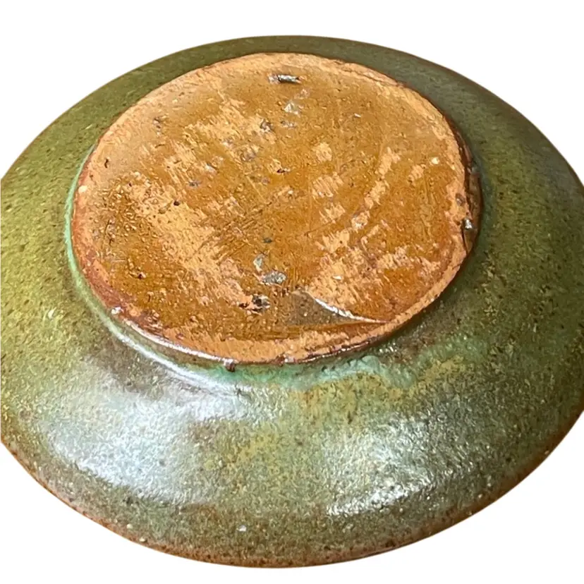 Handmade Green Pottery Candle/Jewelry/Trinket Dish Possibly Vintage Carolina Pottery/Redware