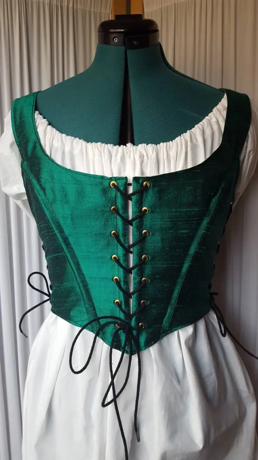 REDUCED PRICE! The "Aileen" Bodice is 100% silk and feels amazing. It is hand sewn by me and is made of quality materials. The color in this gorgeous handwoven dupioni silk is a rich and shimmering emerald green. Swatches available upon request.