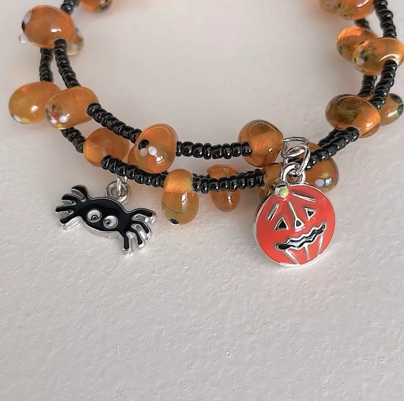Handmade Halloween ๐ป ๐๐๐ท๏ธ Bracelets With Beads, Ribbons And Charms. Unique And Fun!!