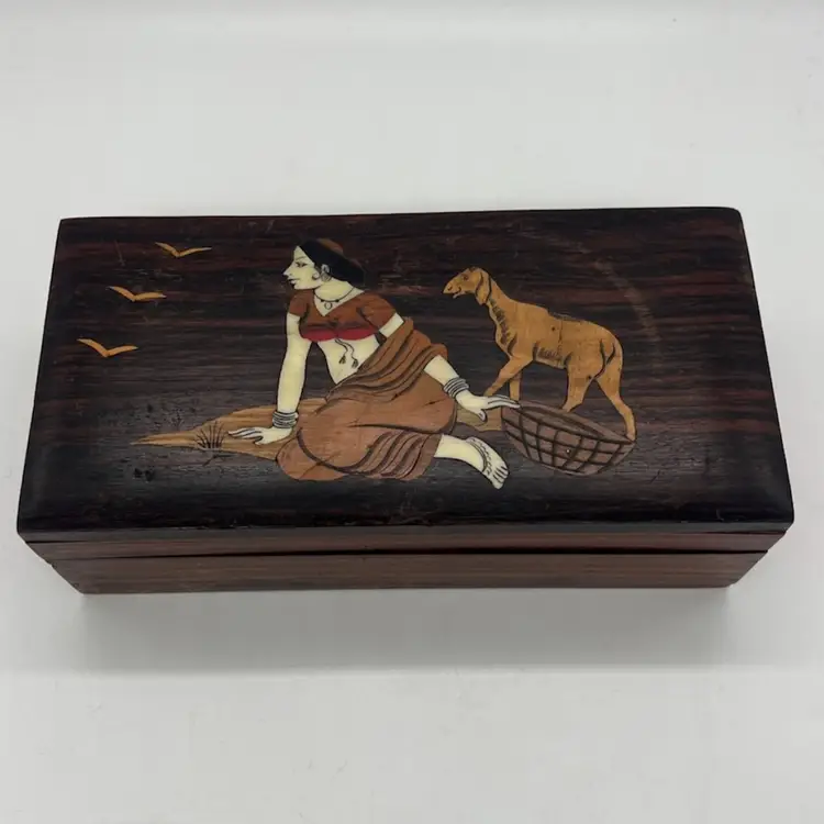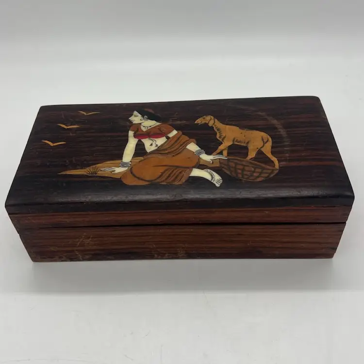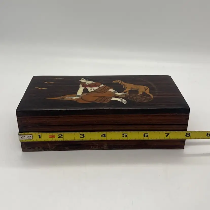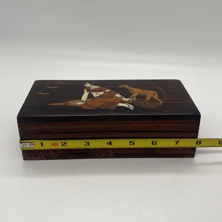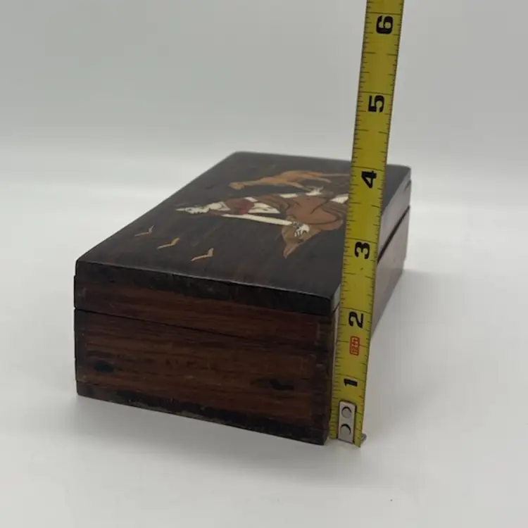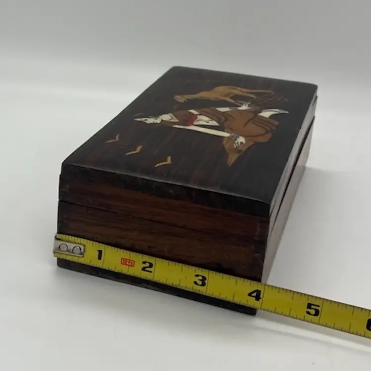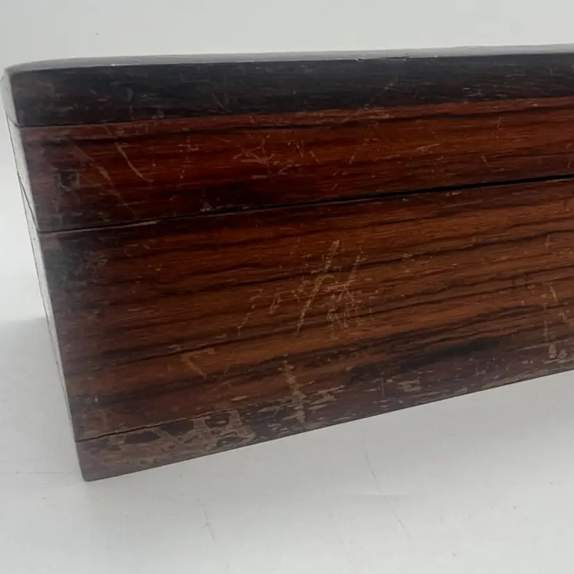 Good condition. Some scratching and wear as pictured. About 7.75” long x 4” wide x 2.25” tall.