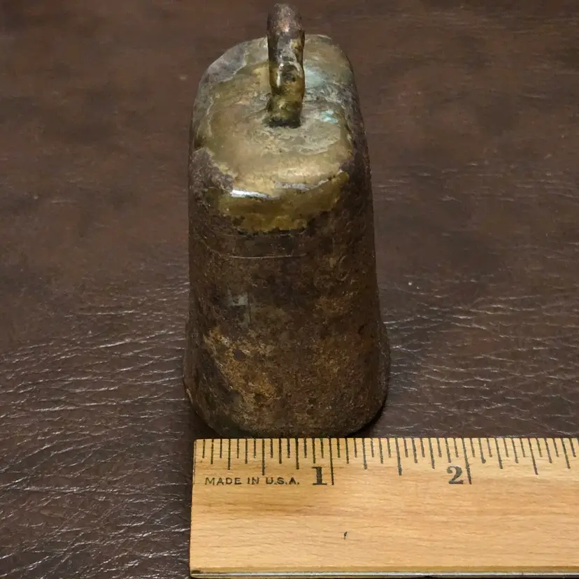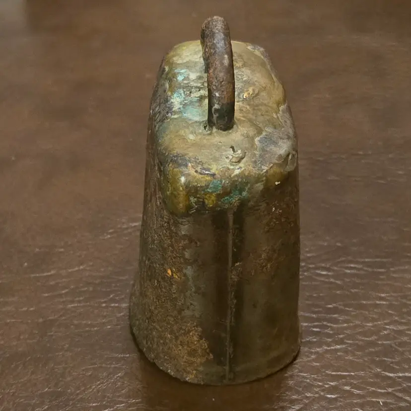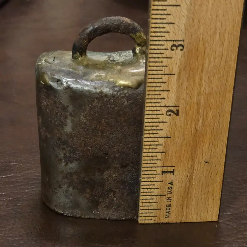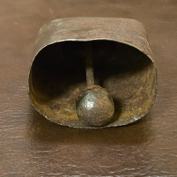 Handmade Metal Bell Primitive Rustic Goat, Sheep, Cow 3¼" Tall Elongated Round Shape. Used condition with rust, bends, nicks, tears, etc. from actual use. Please view all the photos and please ask any questions prior to purchase when possible.