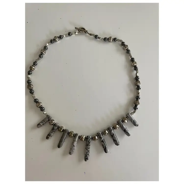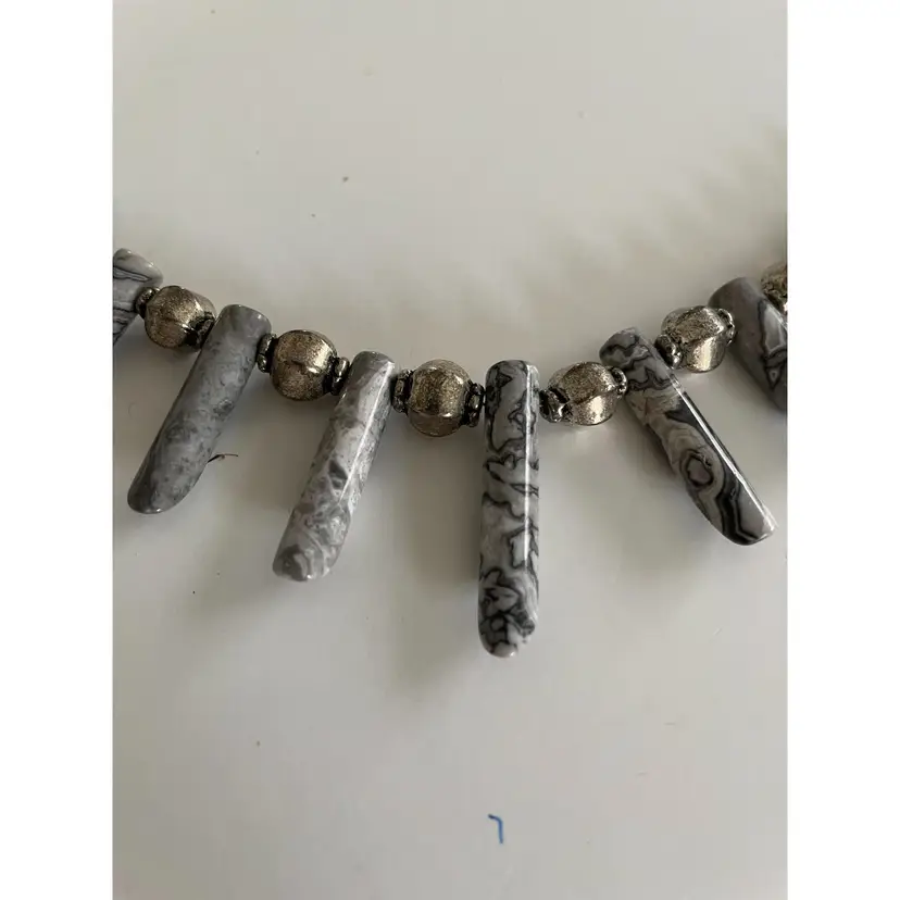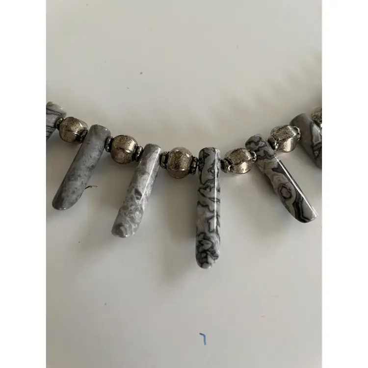 Handmade Grey Jasper Necklace Handmade 20" Long Has silver and grey colored spacer beads Beautiful statement piece Jasper stones support and bring Tranquility. They provide protection and absorbs negative energy. Suggestions only.