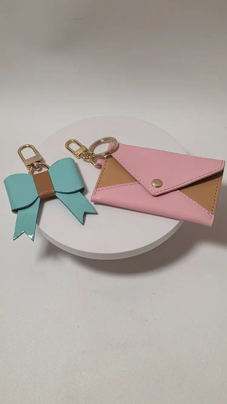 This product is a set of two handmade patent leather purse charms / key chains, designed specifically for women who appreciate unique and stylish accessories. The key chains feature a multicolor design adding a touch of charm to any purse, handbag,or set of keys. With a theme centered around shoes and bags, these handmade purse charms / key chains are perfect for those looking to add a touch of creativity to their everyday look.