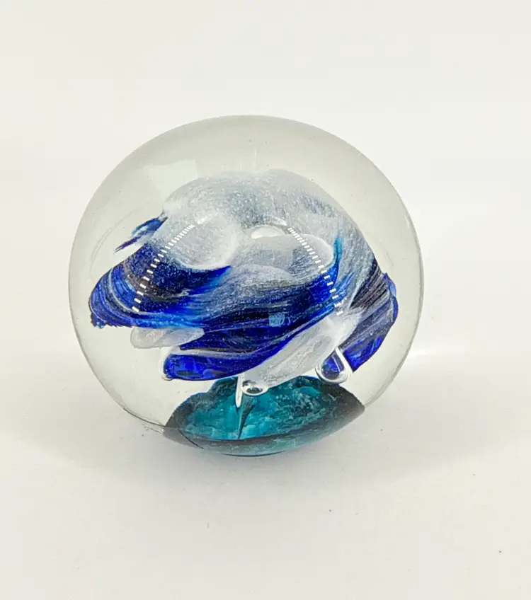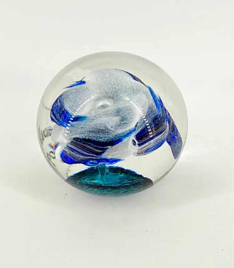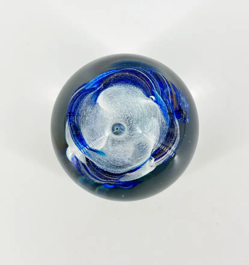 It is 2.5" tall and measures 3" in diameter at its widest. It is in excellent condition. There are no cracks, breaks, chips or repairs. (See photos).