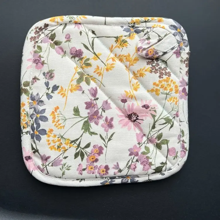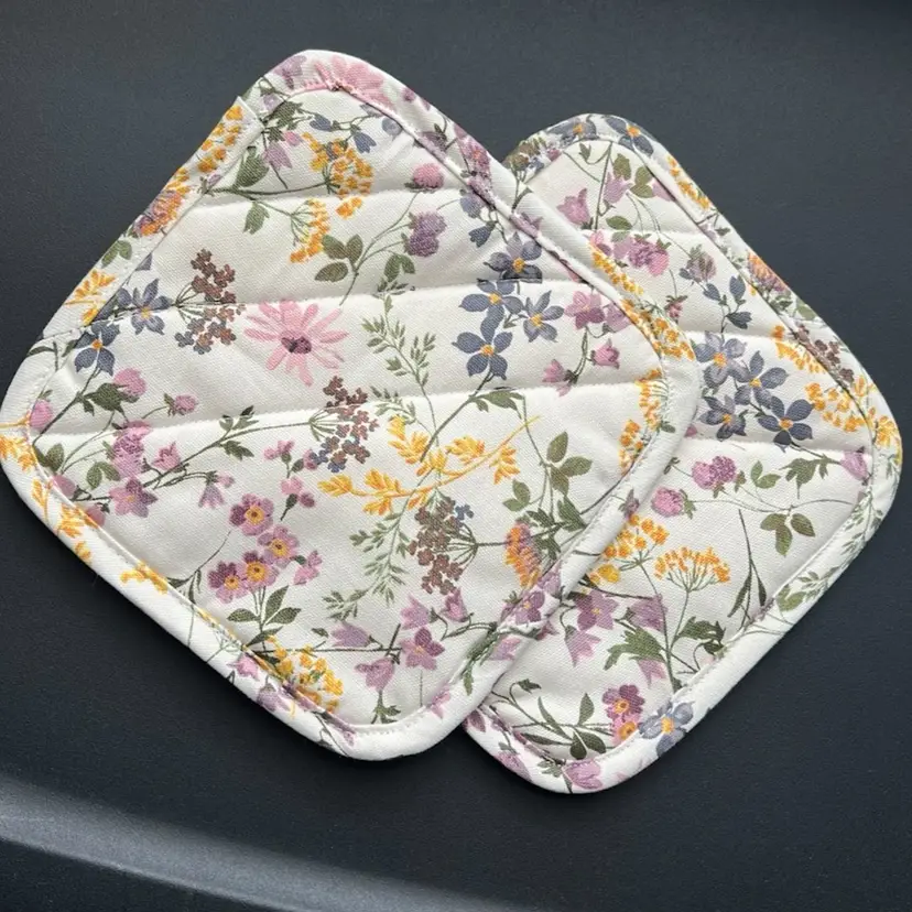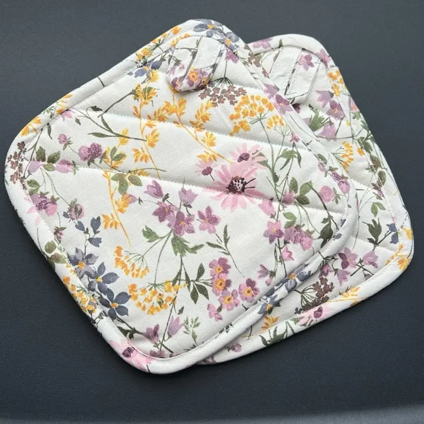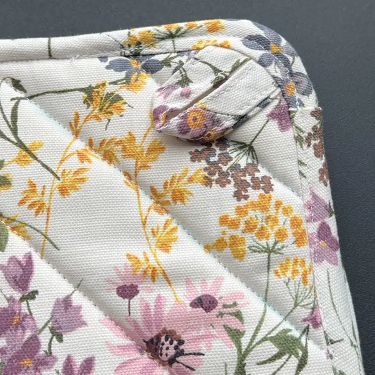Both pot holders have loops for hanging