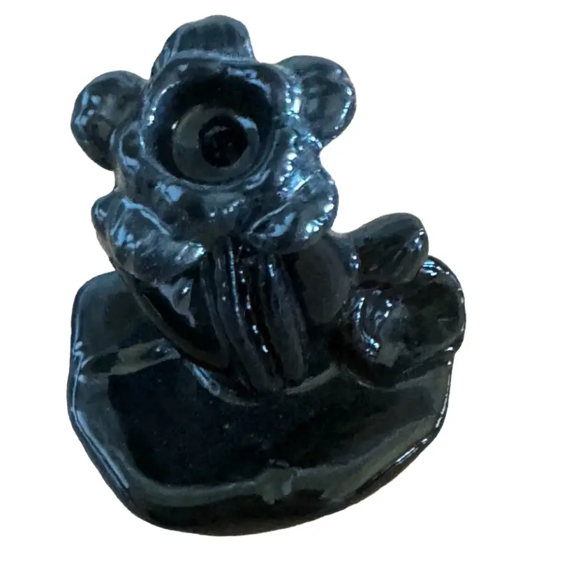 Handmade Pottery Hand Vase With Tiny Place For Single Stem Flower Glazed in black