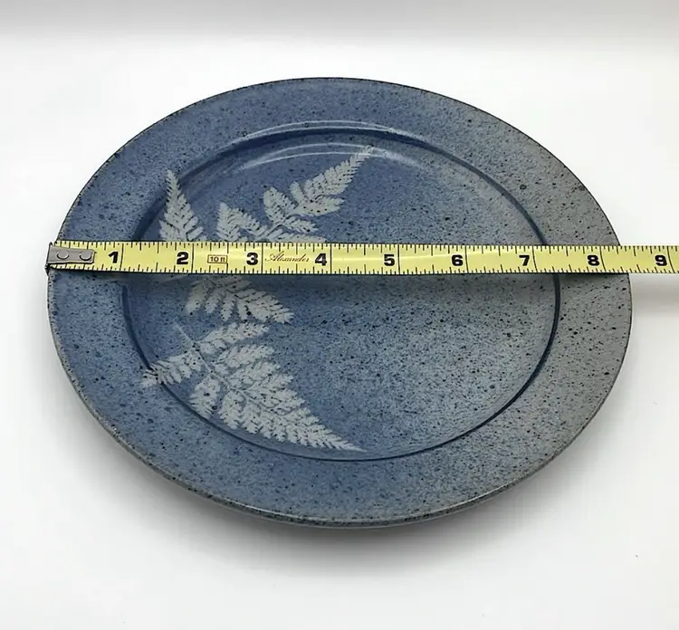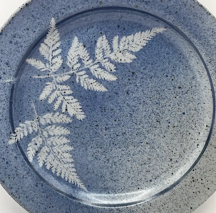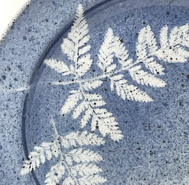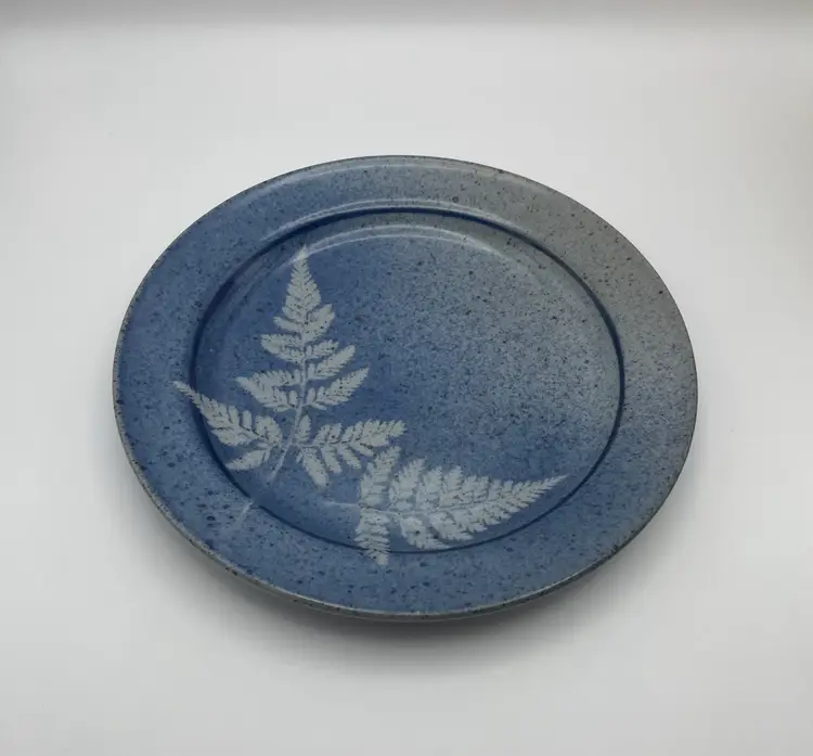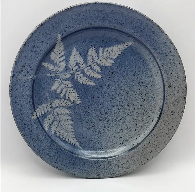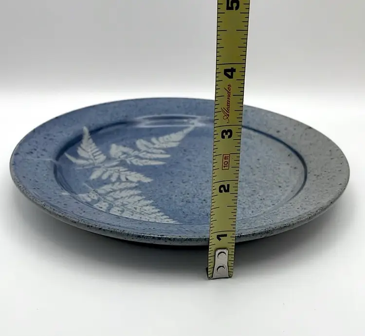 Handmade Pottery Plate, 8.25”, Fern Design, Speckled Glaze Ombré, Artist Mark Please see pictures for measurements.
