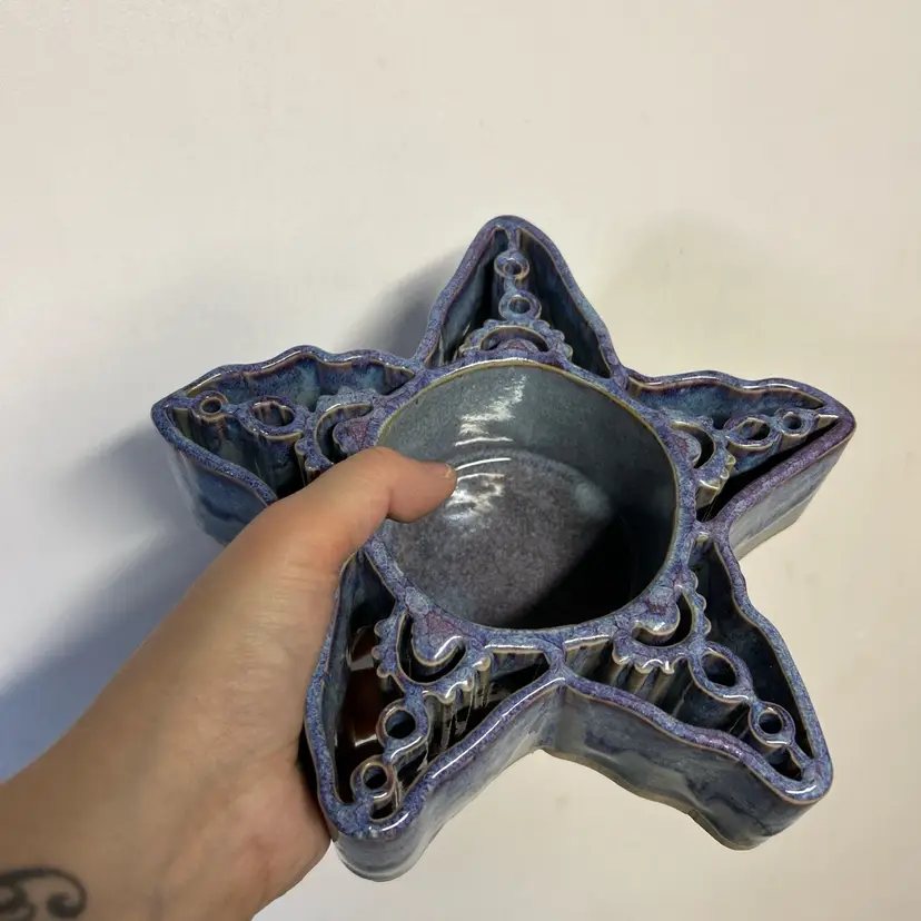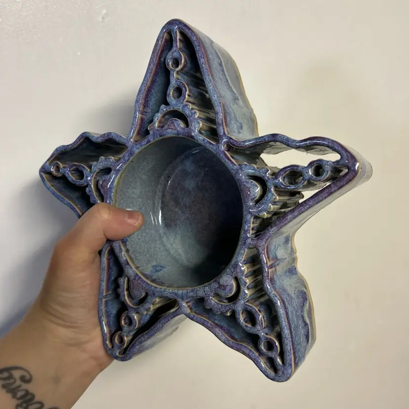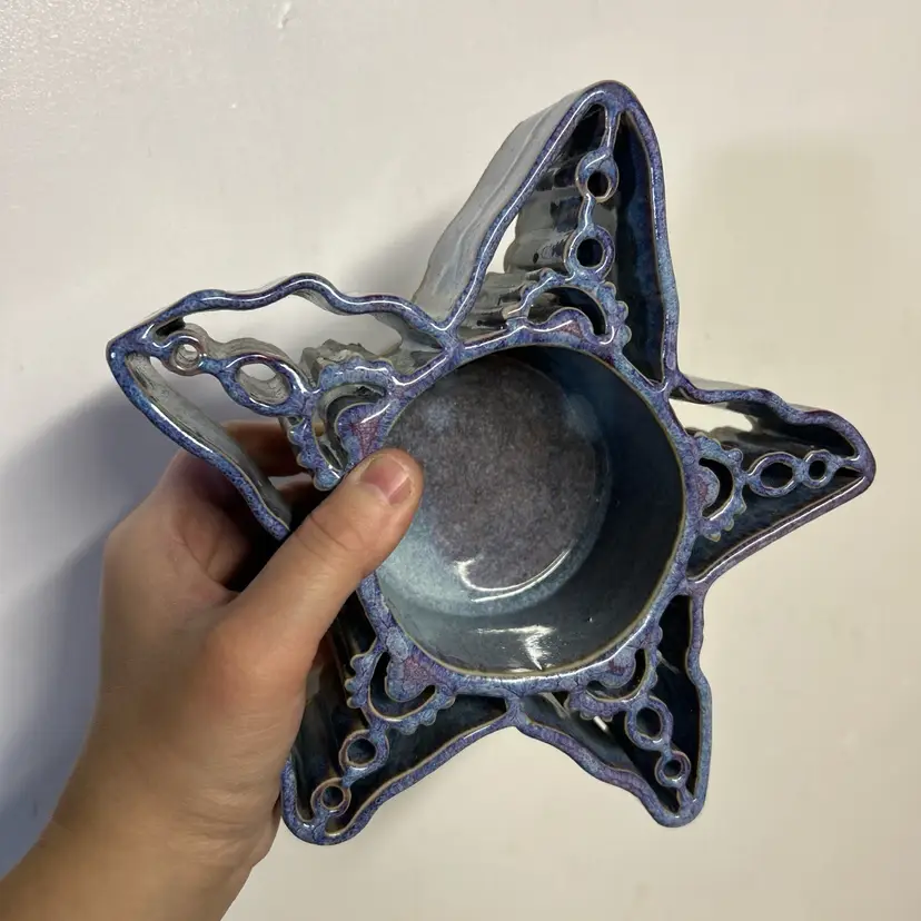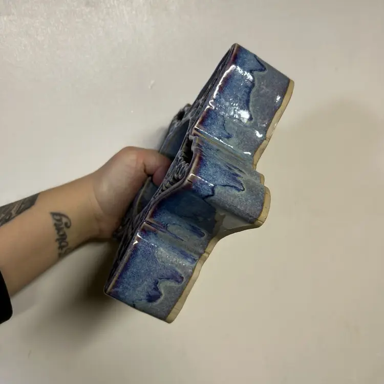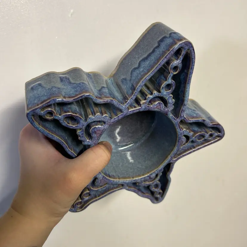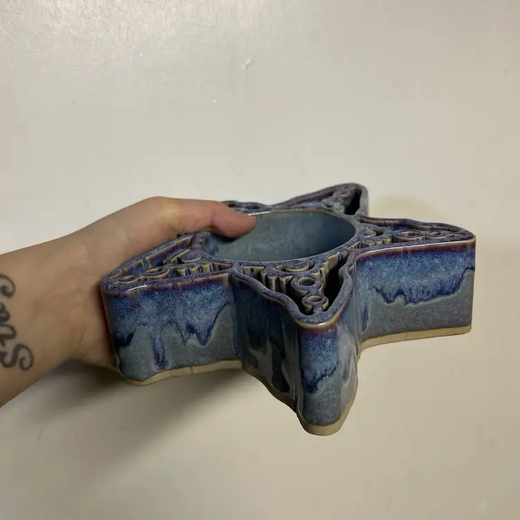 You could also use this for jewelry. The glaze is gorgeous! Height is a little past 2 width is 8