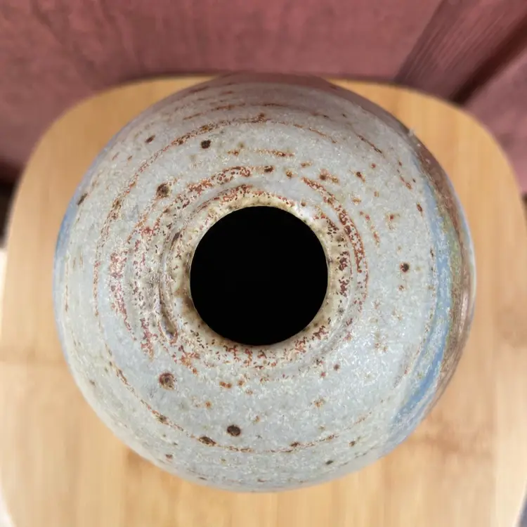 Approx 3.75”w x 6”h - opening 13/16”. Excellent pre-owned condition. No chips or cracks. See pictures as part of description. Artist passed in 2014.