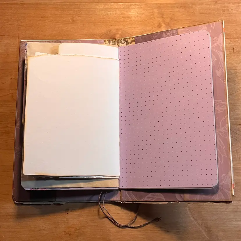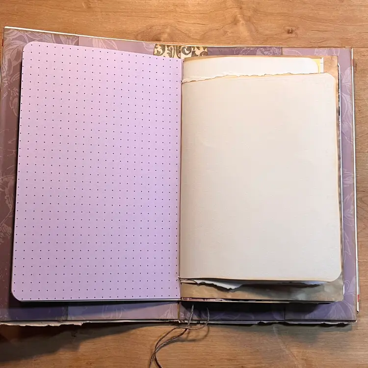 This notebook was made by me, Dionne, an artist and writer from the Pacific Northwest, Washington state to be more exact. Most of my work is inspired by the trees and wildlife near me or books and stories that grab onto me. I am passionate about creating with paper, fabrics, and other textiles and I am often inspired to create unique journals and art pieces. I find joy in blending my artistic talents with my love for nature. I also love coffee! You can learn more about me on my very own website: http://thewhimsicalmysfit.com