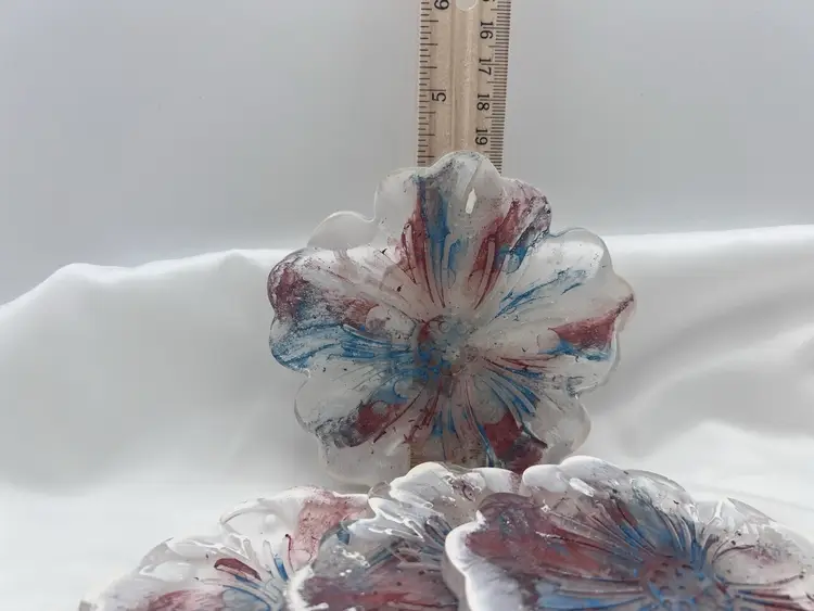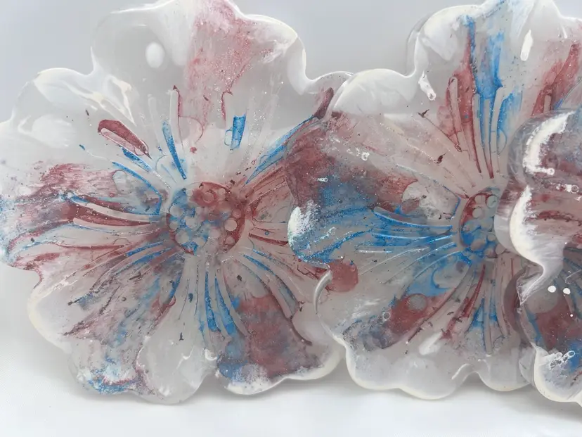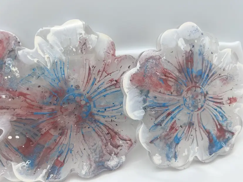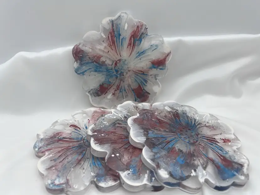 Original artwork made by me. Resin and alcohol ink coasters shaped like flowers. No two are alike. Beautiful functional art Set of 4