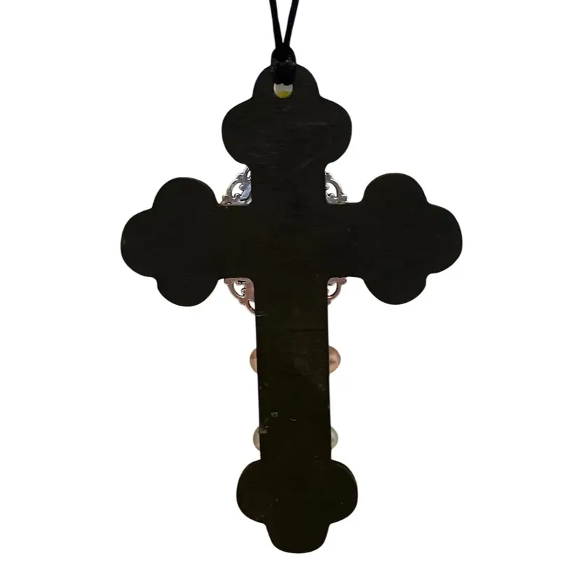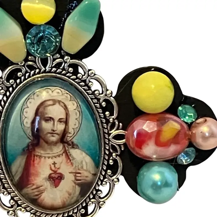 I just started making these beautiful crosses just in time for Christmas! This cross is made from a wood base that measures 4” x 2.5” and has a mixture of new and vintage beads and rhinestones applied with glue. Just the right size for a Christmas tree or can be used as a small wall cross.