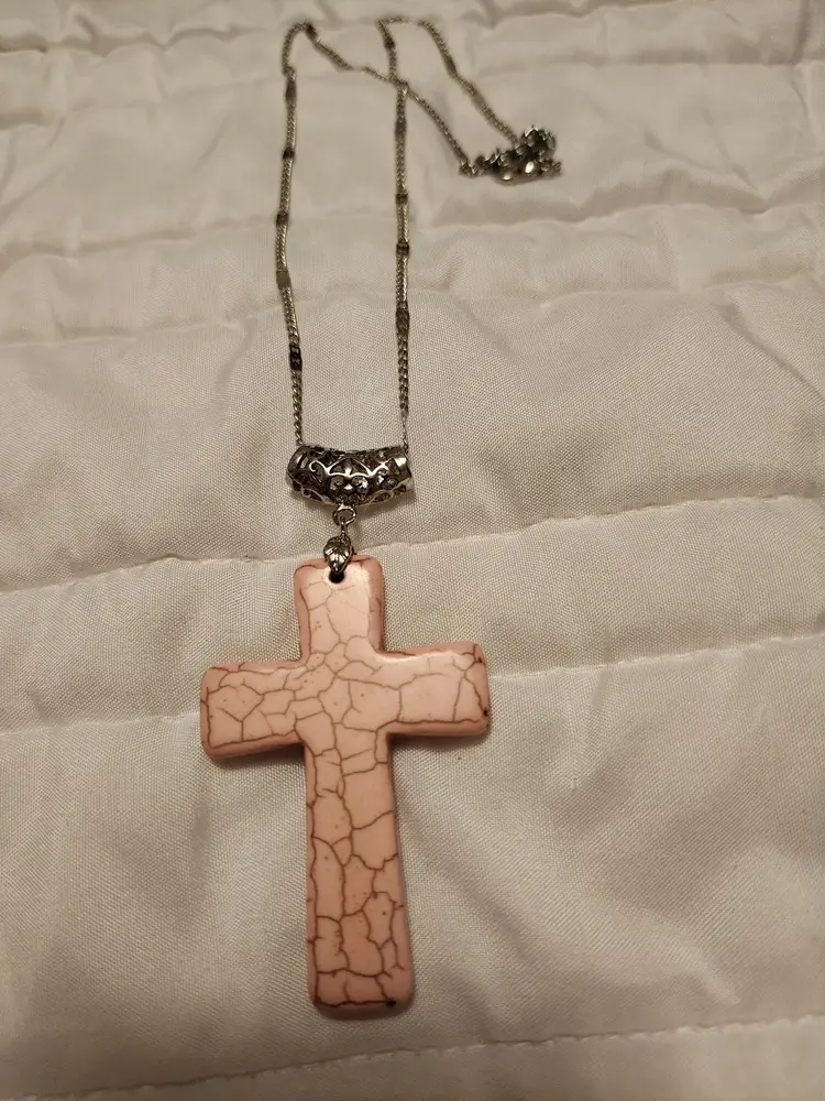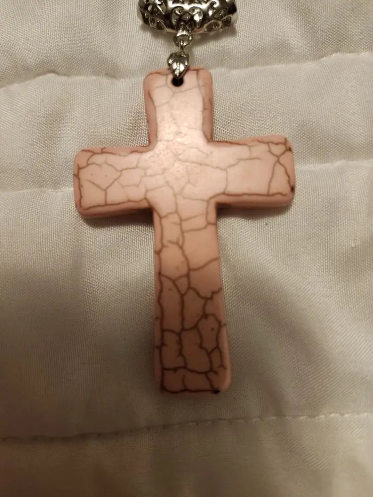 This is a Bigger pink turquoise Carved Cross.handmade with a 18 inch silver chain included