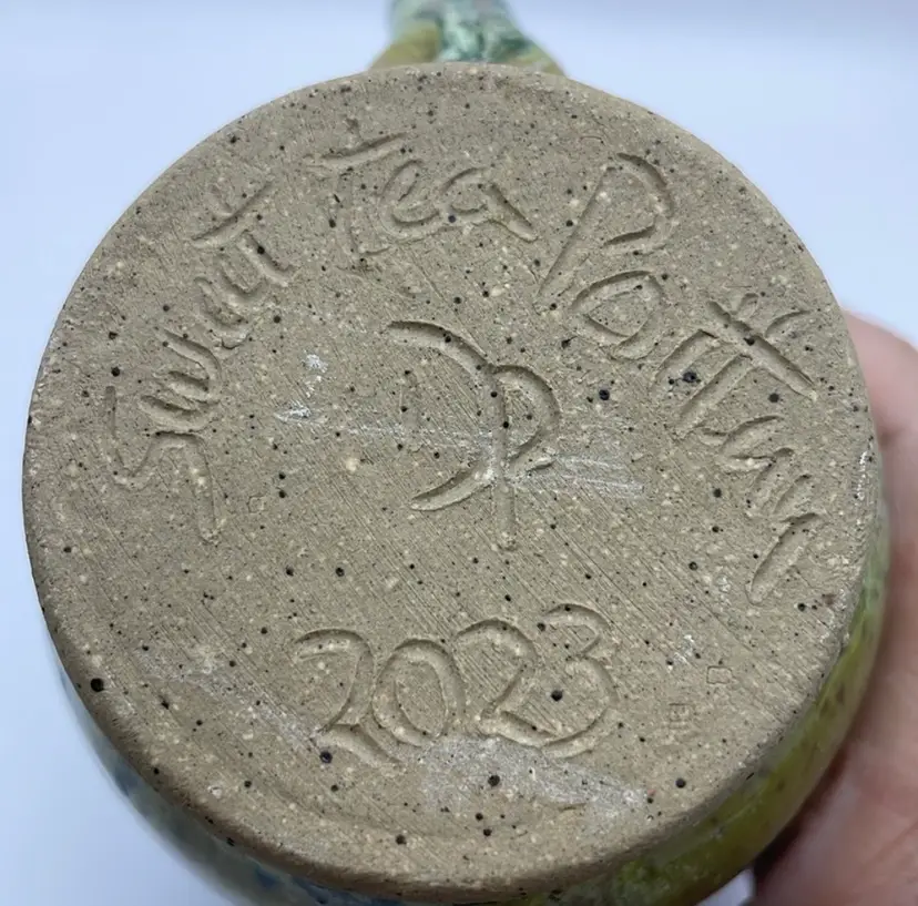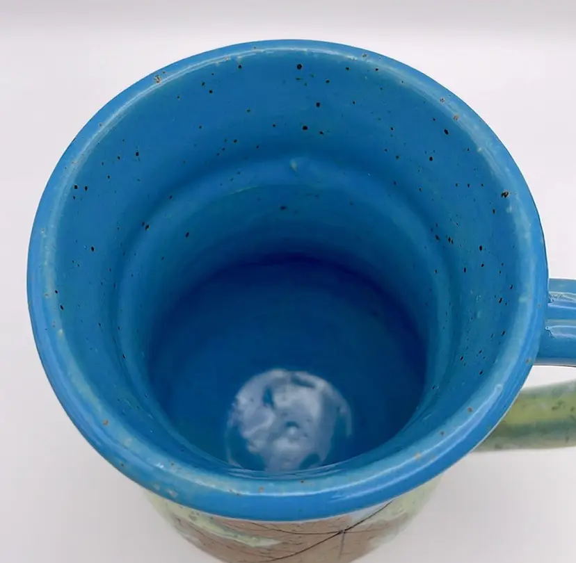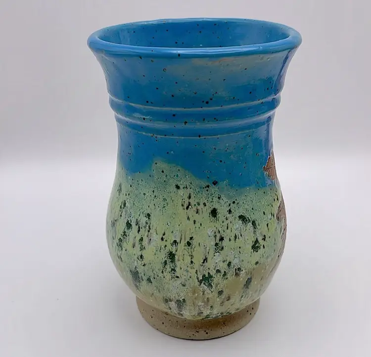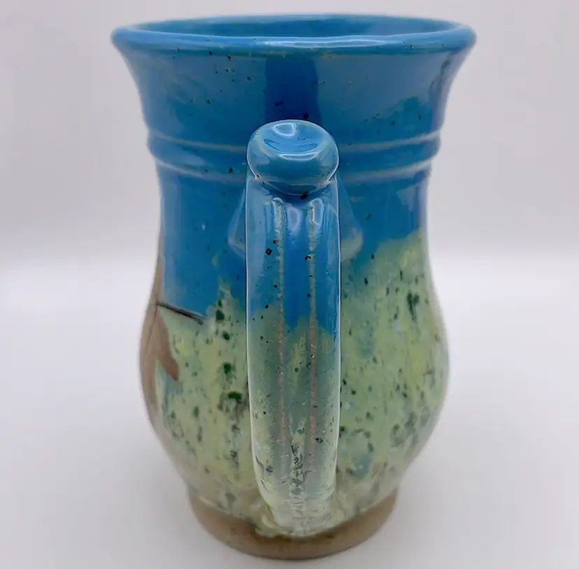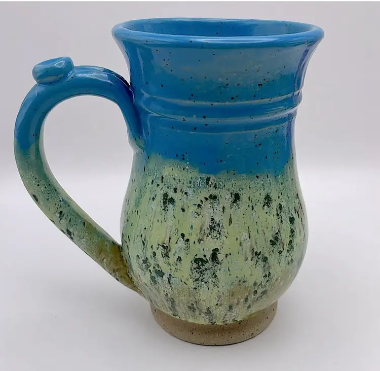 Handmade, Sweet Tea Pottery, Studio Art, Handle Mug, Maple Leaf, Turquoise/Green. Beautiful for Fall!