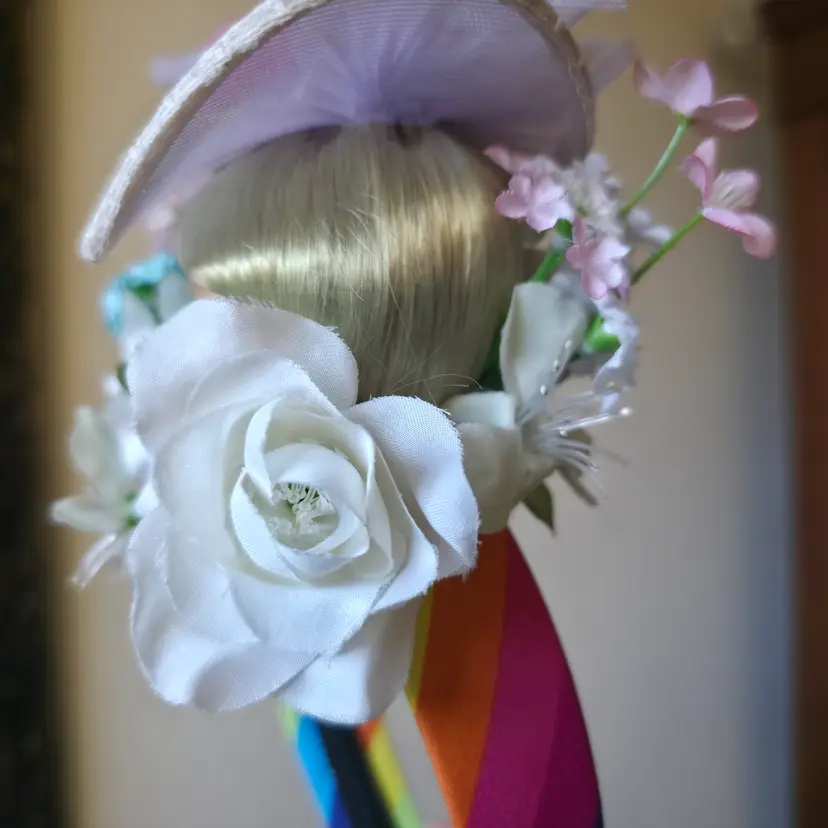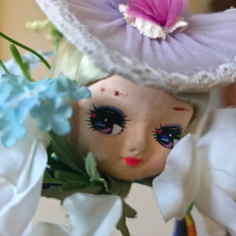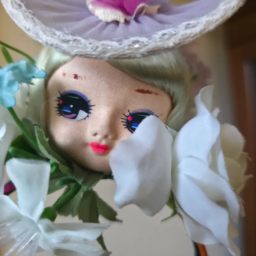 Please review photos carefully prior to purchase this is handmade by adding vintage doll head and flowers (not done by me)