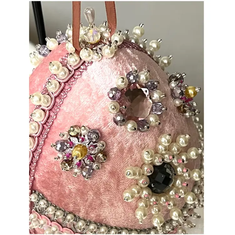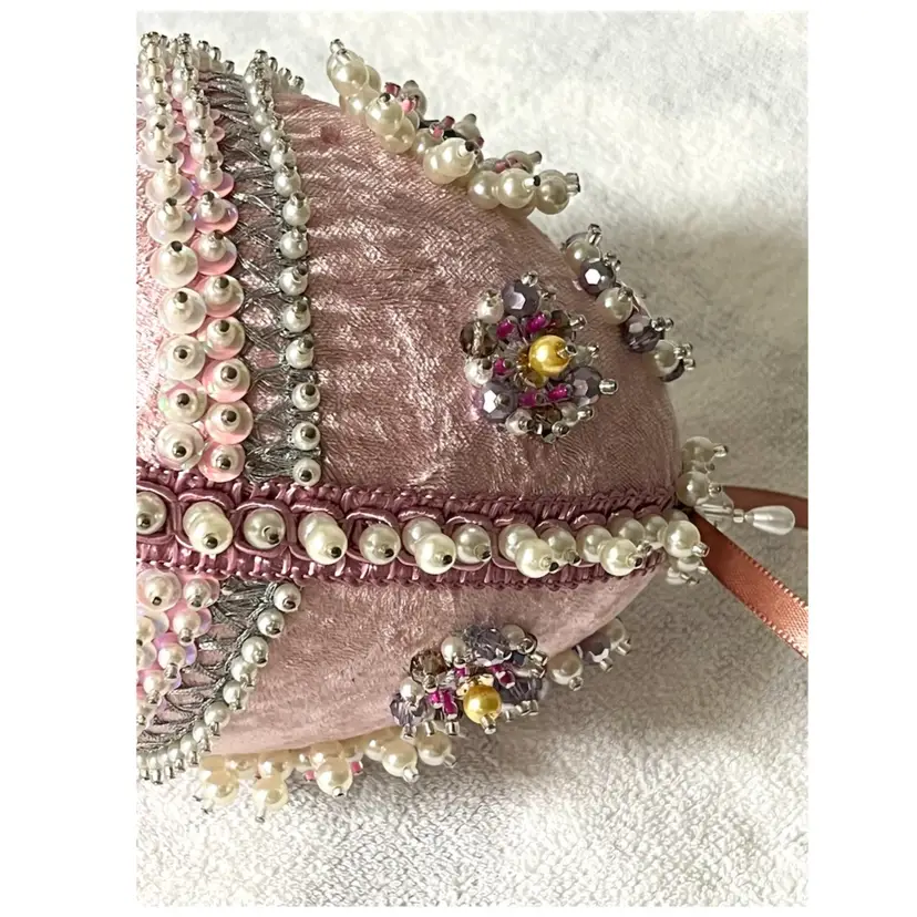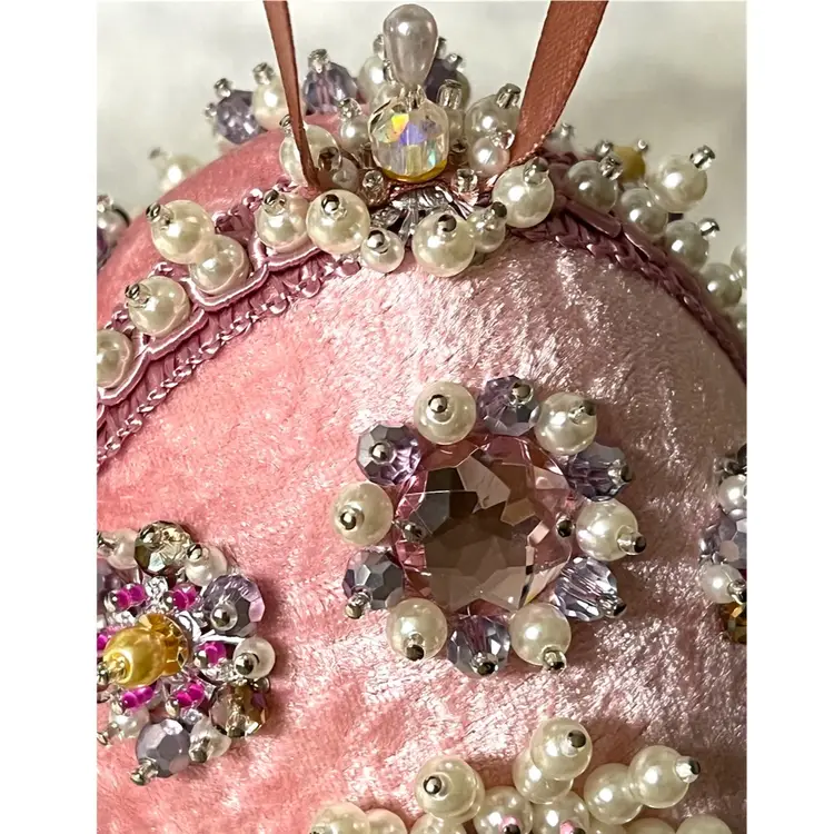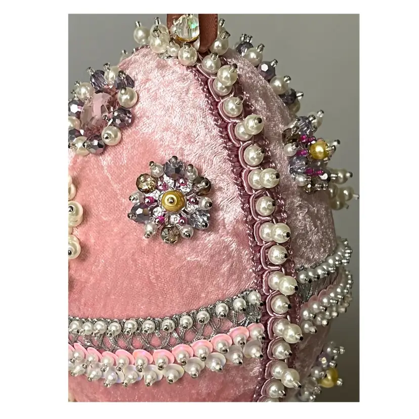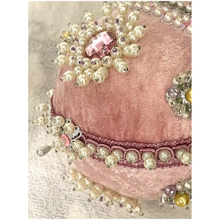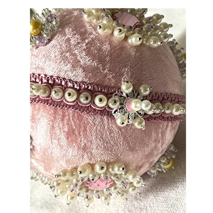 Handmade Vintage Style Push Pin Easter Egg Ornament Pearls Sequins Beads Ribbon. 6 in Height