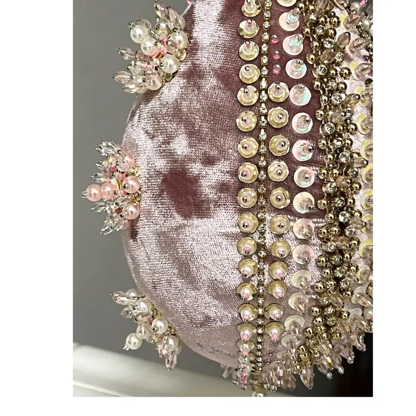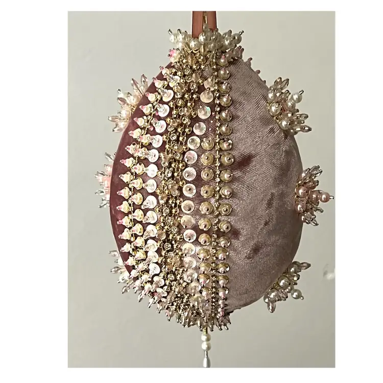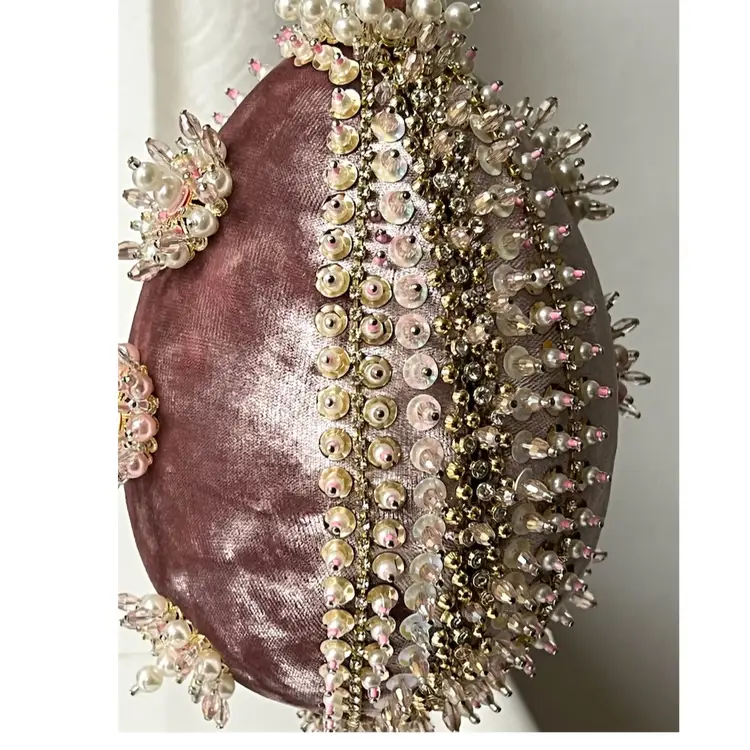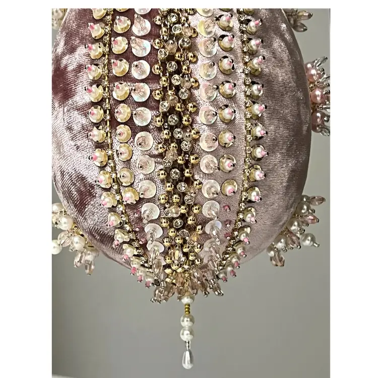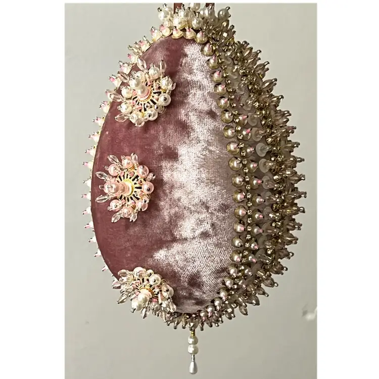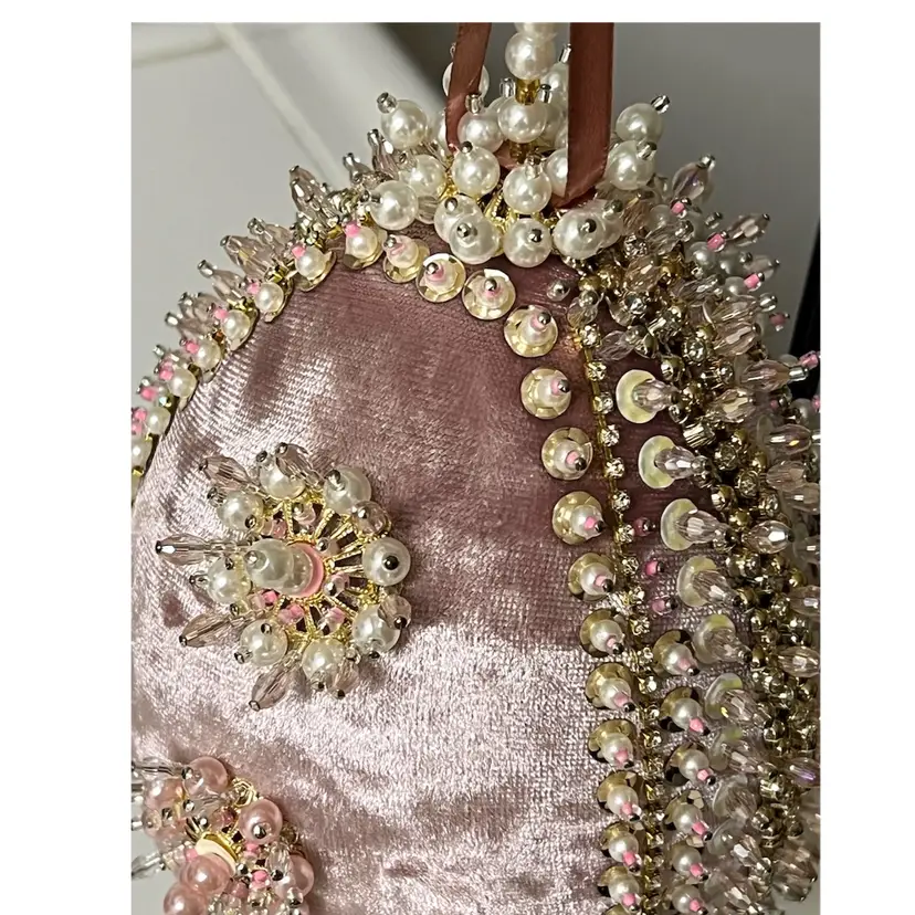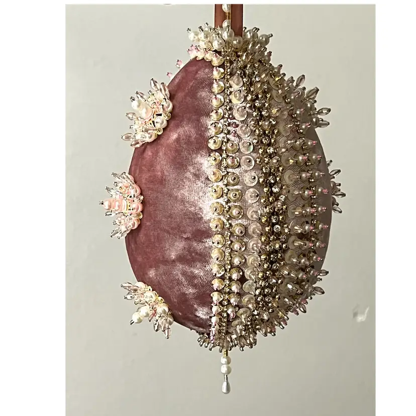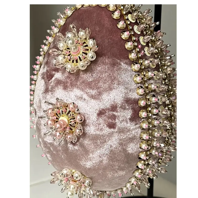 Handmade Vintage Style Push Pin Easter Egg Ornament Pearls Beads Sequins Ribbon. 6 in Height