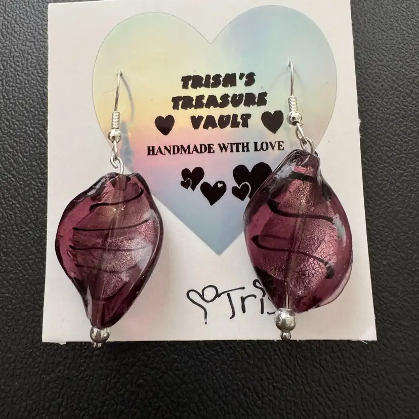 Handmade With Love Purple Art Glass Earrings. Made by me, Trish! 925 Sterling fishhooks.