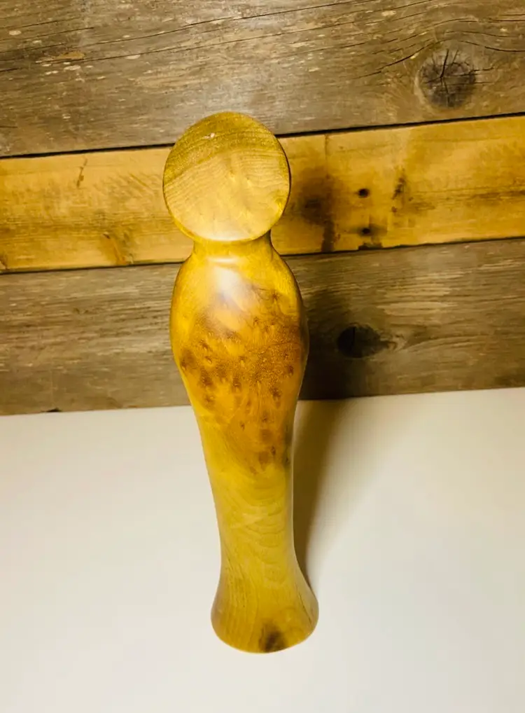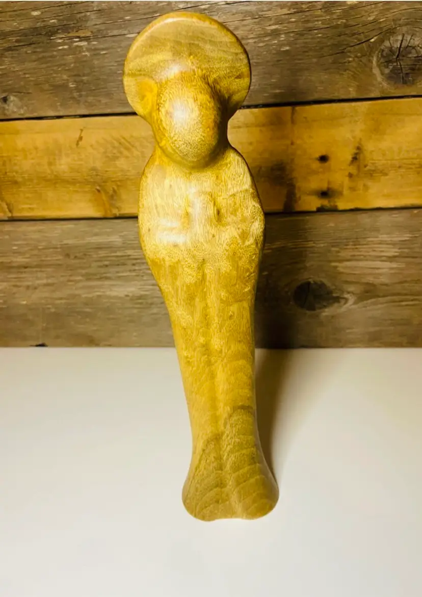 Beautiful smoothly carved handmade Madonna or saint made by Wood N Wonder. A great spiritual piece with mid century vibes. In good used condition. No call outs.