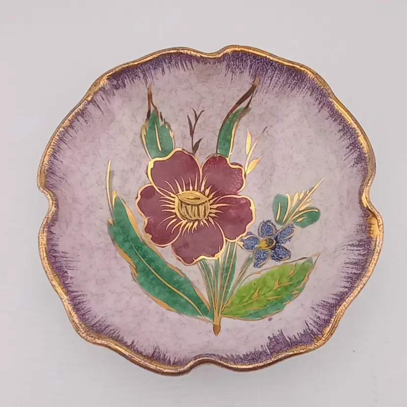 This is a lovely little handpainted ceramic trinket dish from Italy with flowers and gold detail. Even the signature is in gold! It's in excellent vintage condition with no chips or cracks.