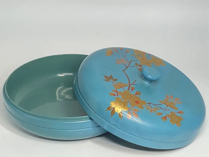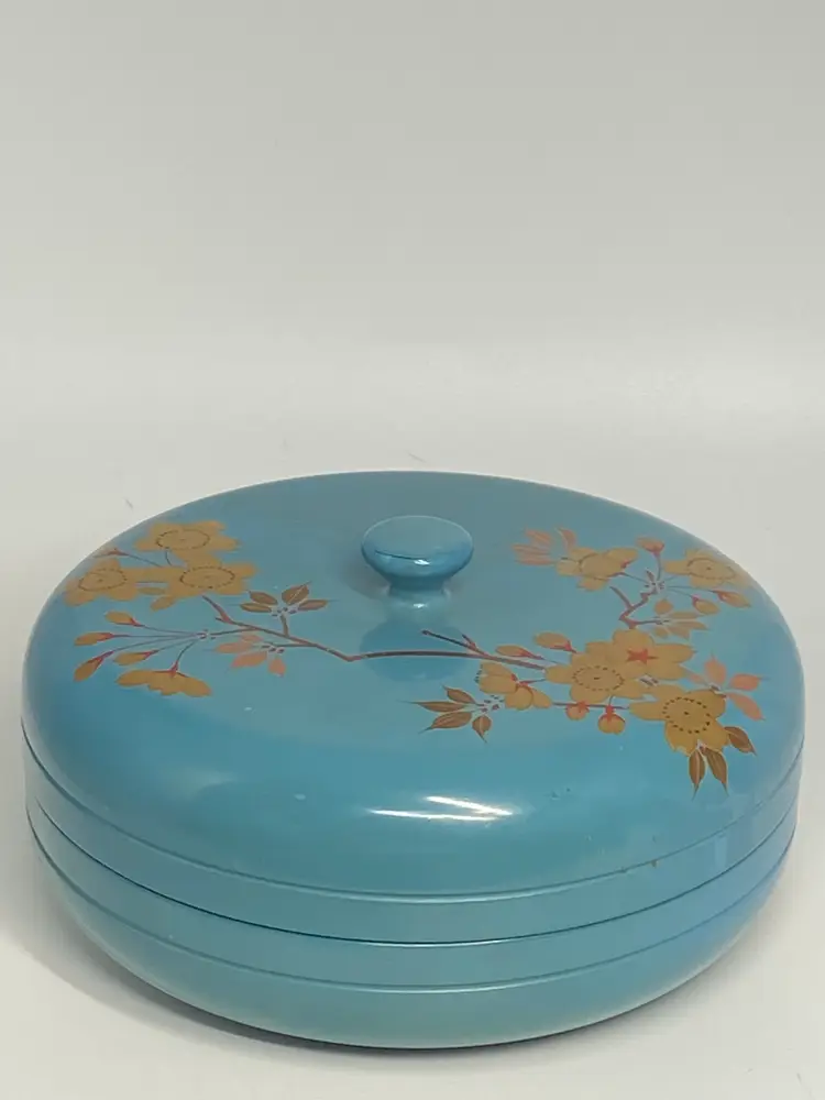 Handpainted Japanese Trinket Box w/ Floral Design Made in Occupied Japan, 5.5" Dia.