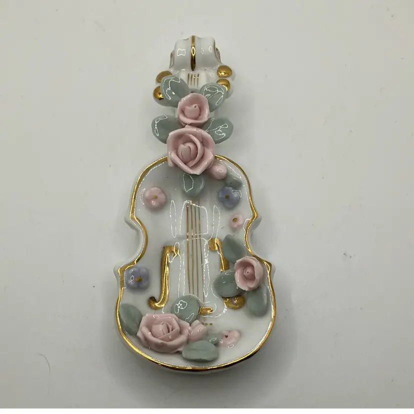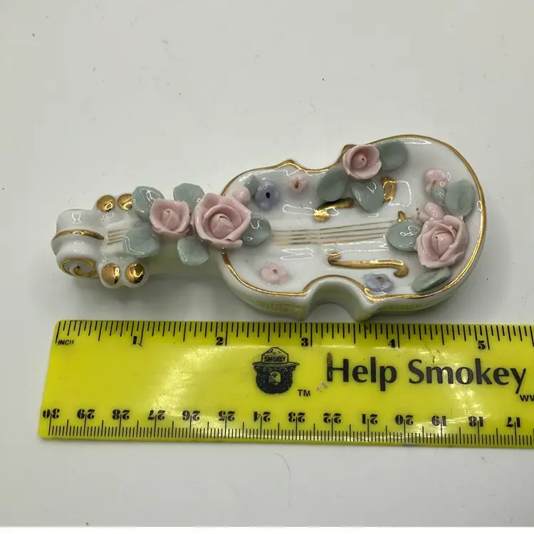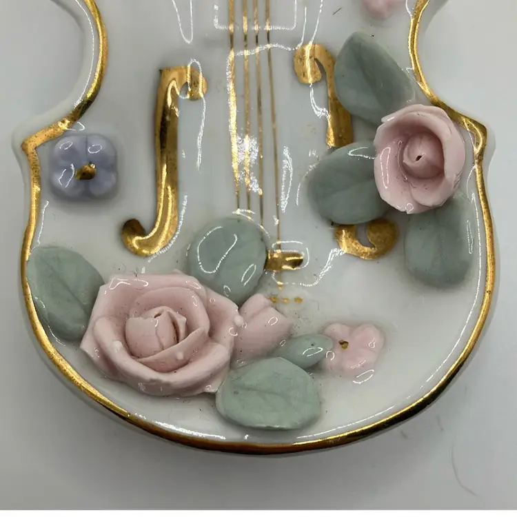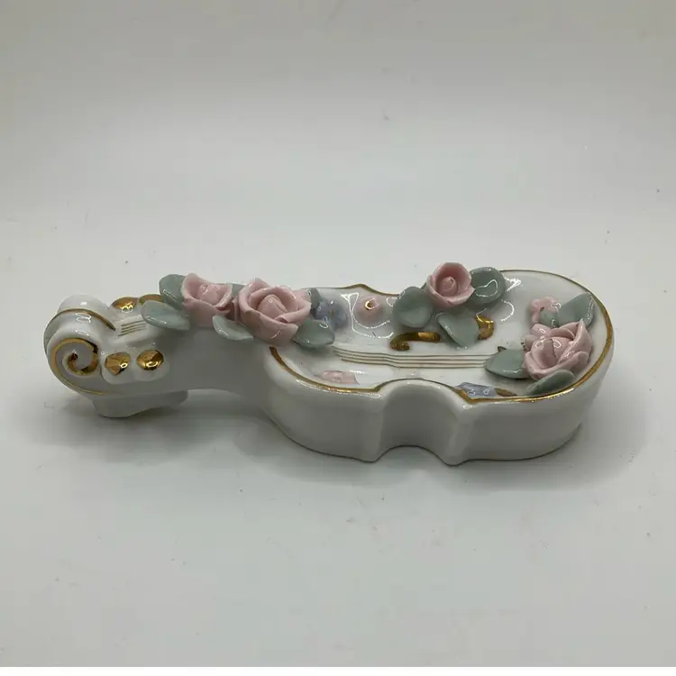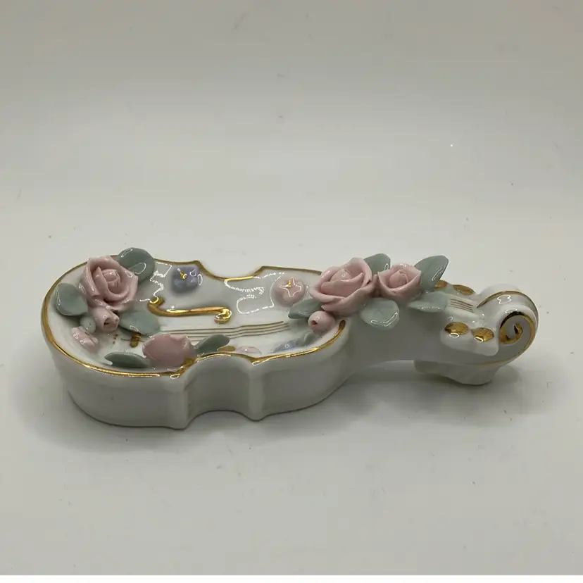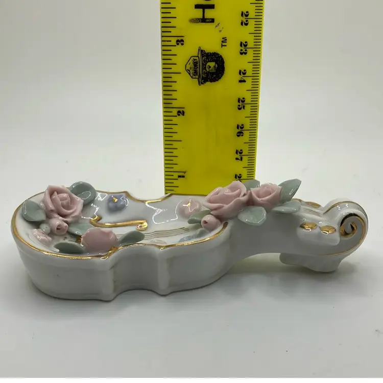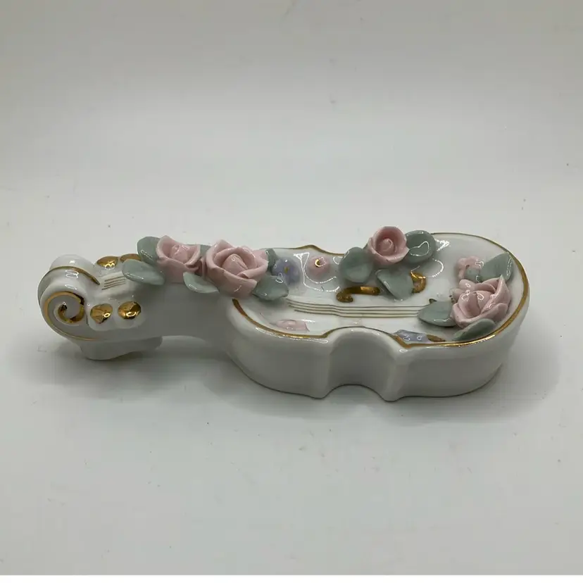 Great condition Flowers and leaves all fully intact and gold detailing is great as well. Cute ring trinket dish for Lefton lovers or music lovers!