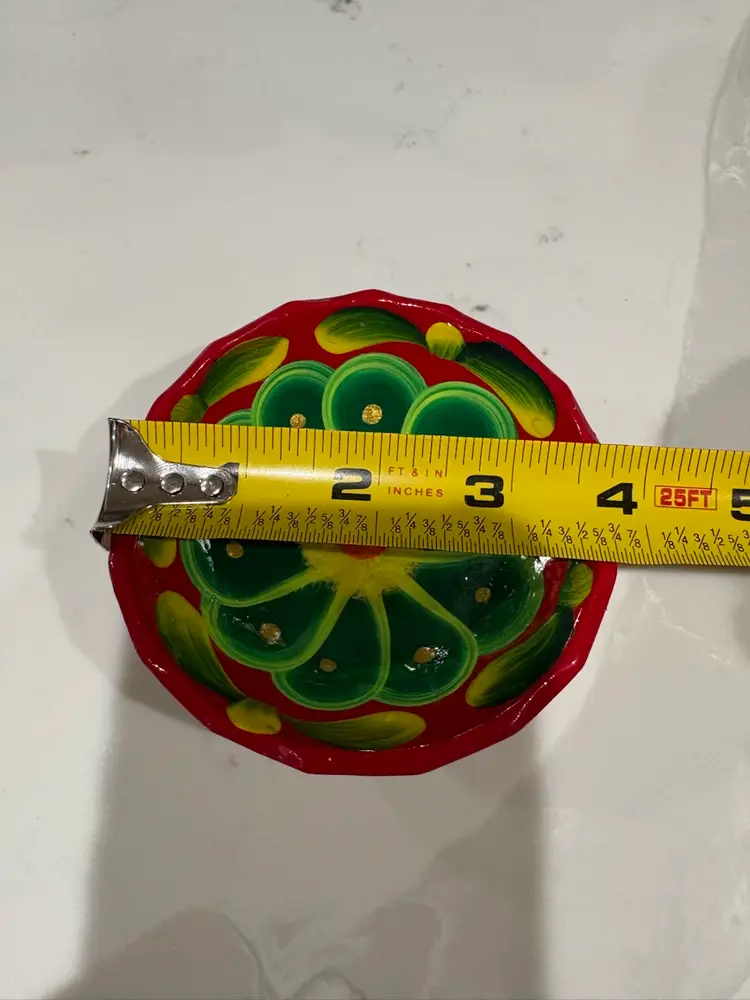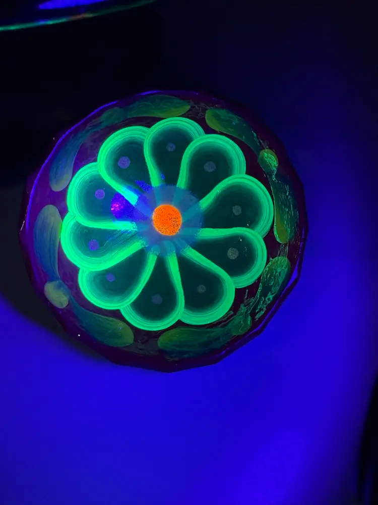 Handpainted Mexican Terra Cota Small Dish Glows Under Black Light