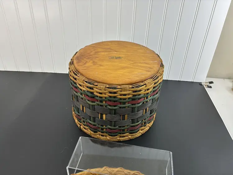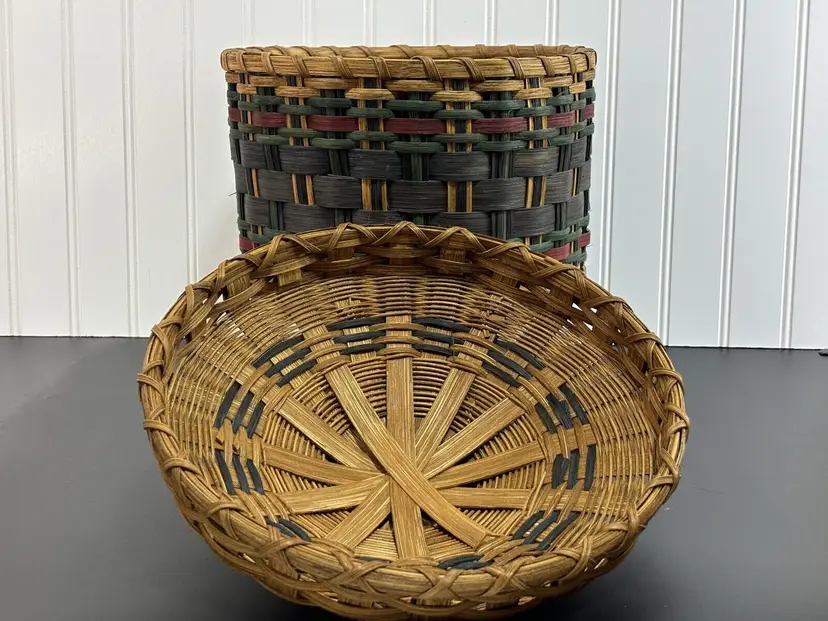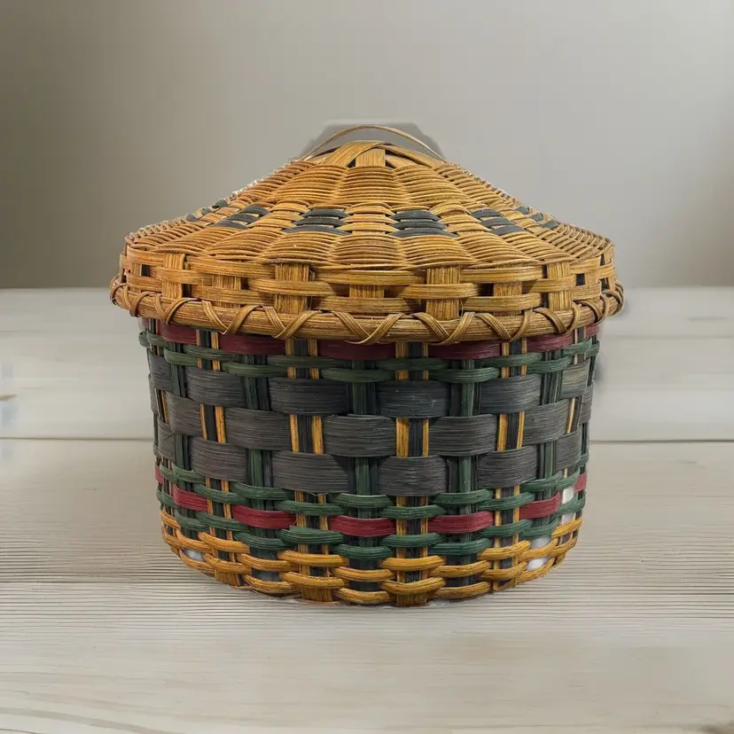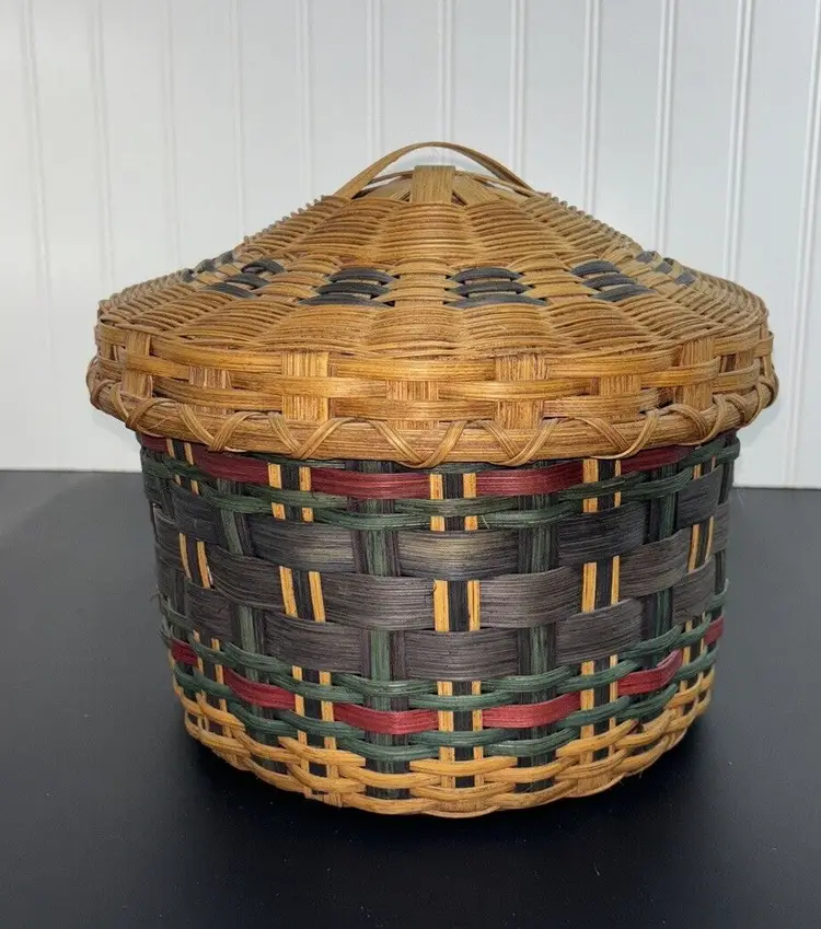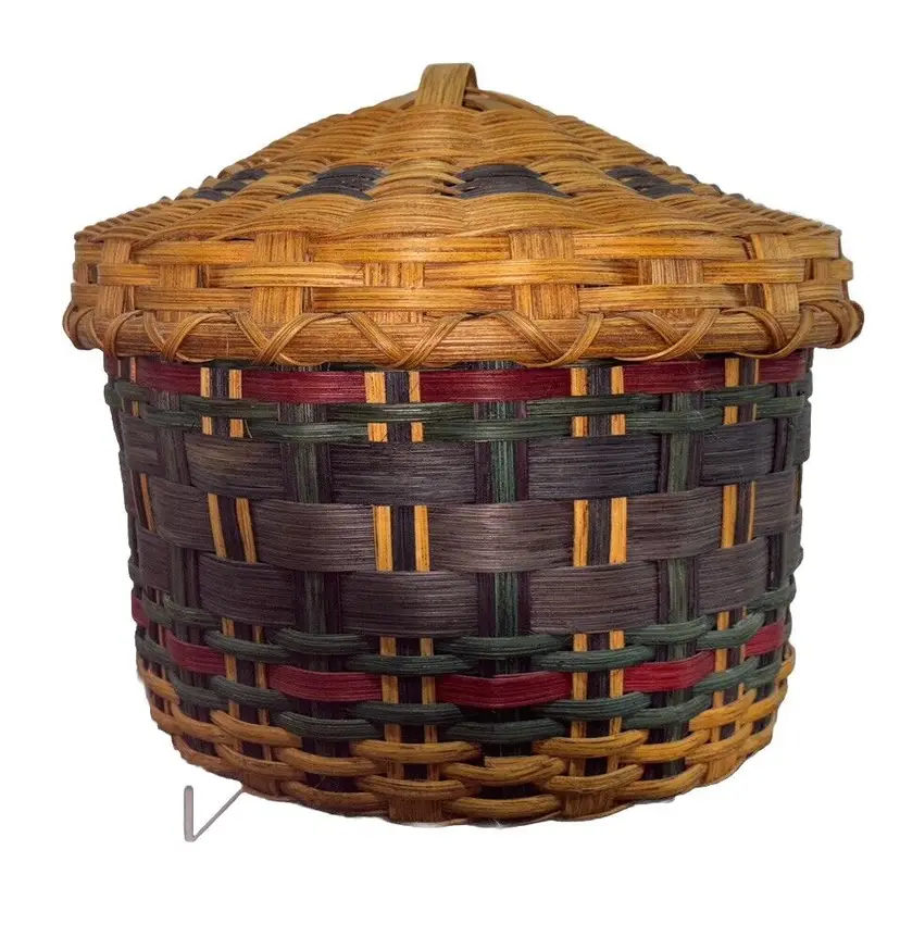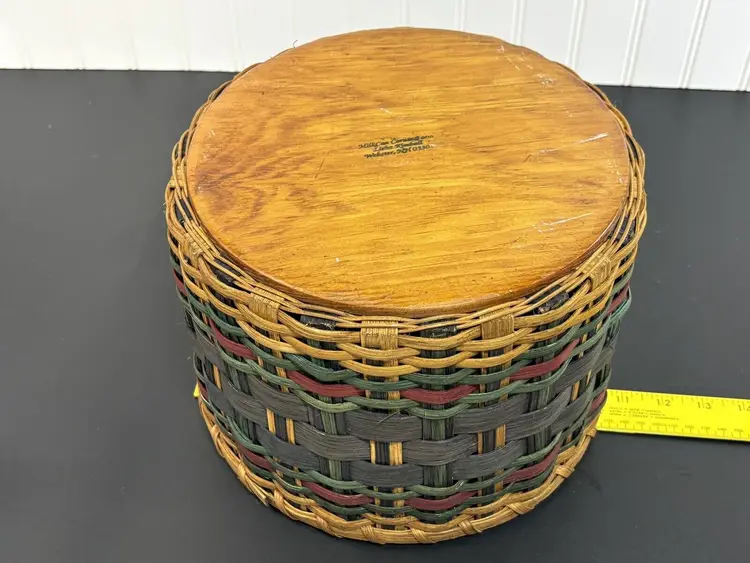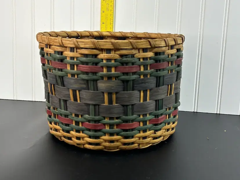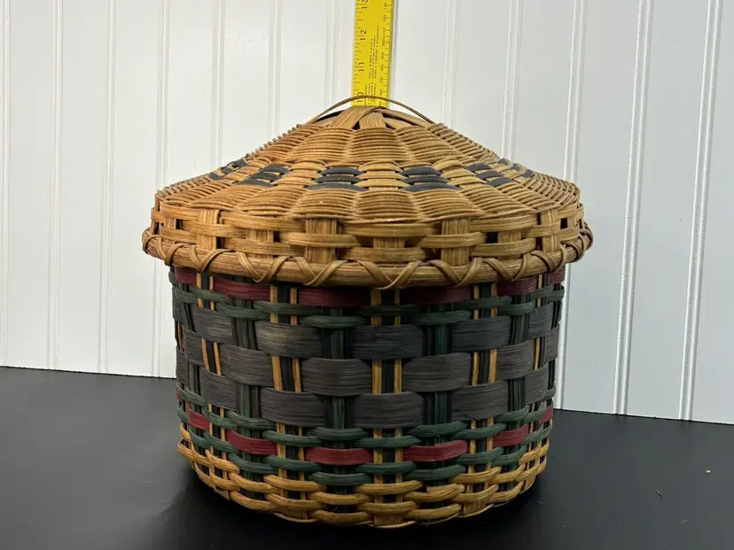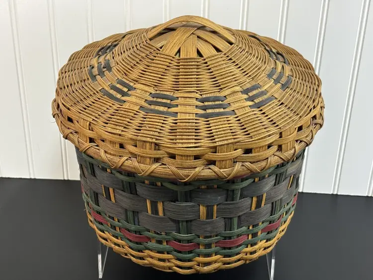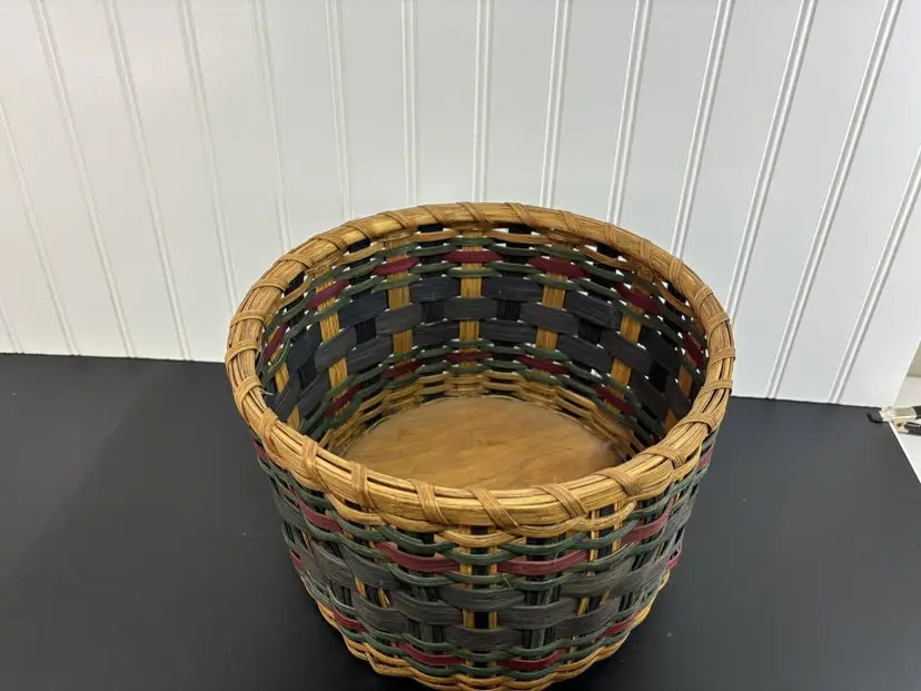 Pattern: Rustic Type: Storage Basket Shape: Round Size: Medium Color: Multicolor Original/Reproduction: Original Style: Country Features: With Handle