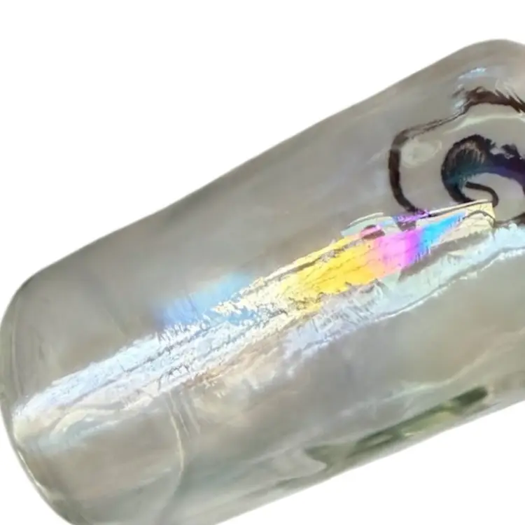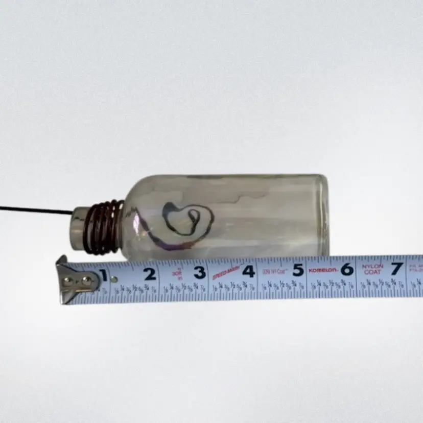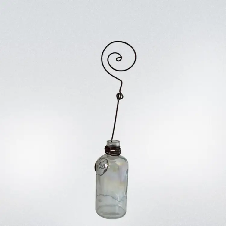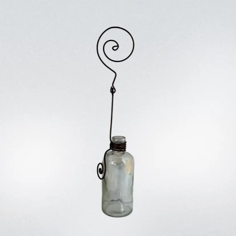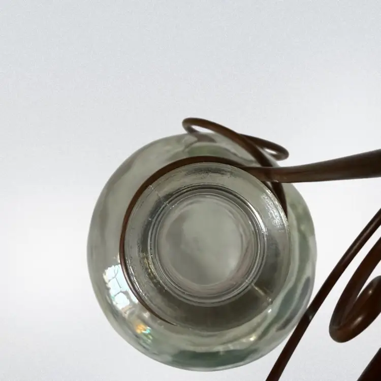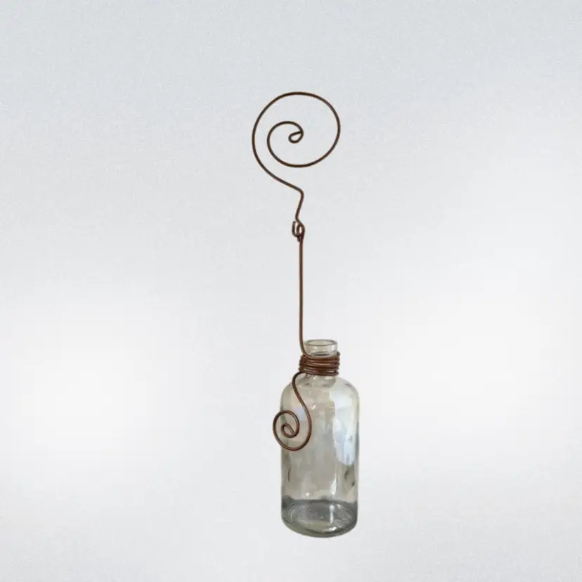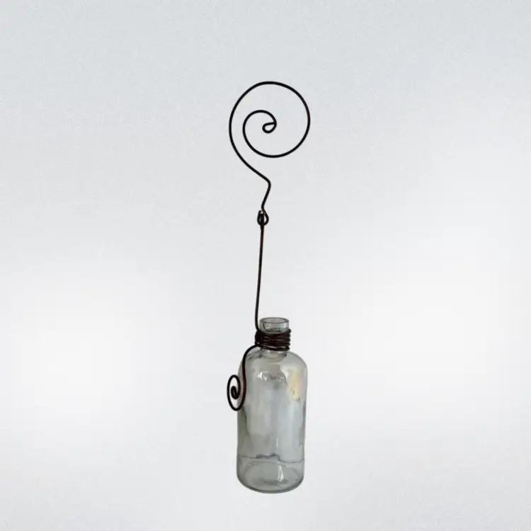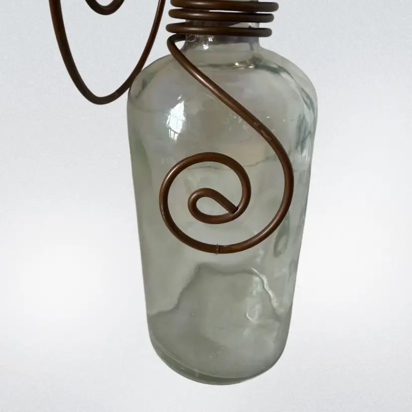 Hanging Clear Plant Clippings or Flower Vase Iridescent Vase W/Metal Hanger & Accents.