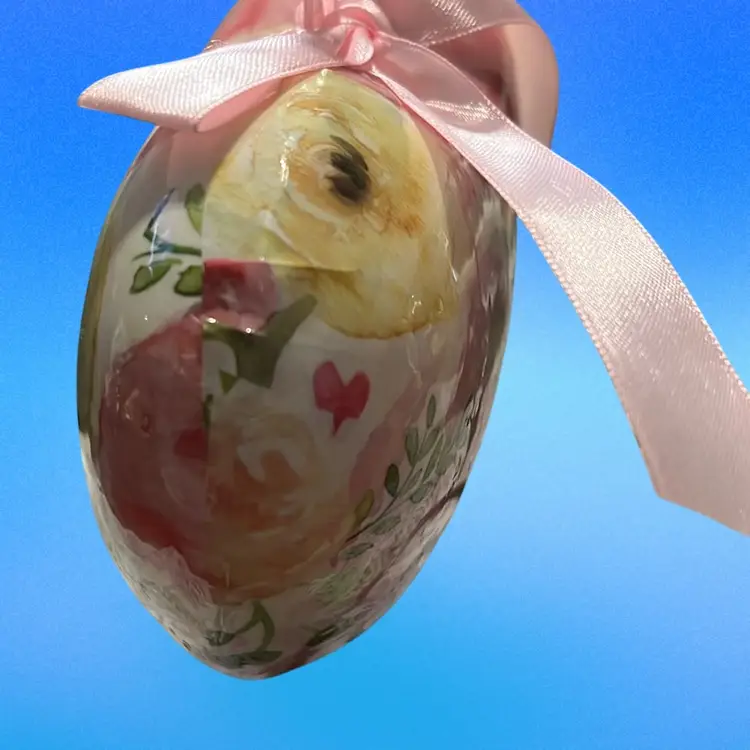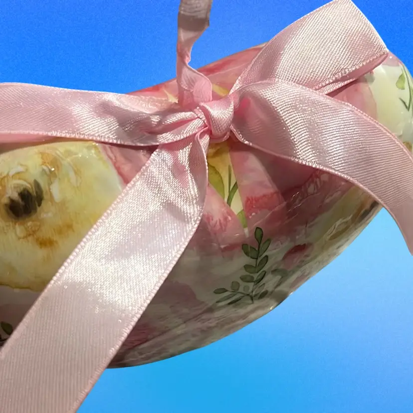 Hanging Heart Floral Paper Mache 6” With Pink Satin Bow Holiday Valentine Day Cottage Core Free Shipping