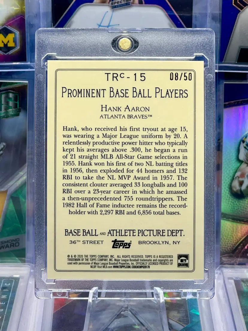Ships FAST within 1 business day, sometimes same day via USPS Ground Advantage. Ships with penny sleeve, toploader, and team bag. Feel free to reach out with any questions. Thank you! Hank Aaron 2020 Topps Turkey Chrome COLOR MATCH Blue Refractor Prizm Serial Number Numbered #’d #d /50 SP Short Print Parallel Insert Atlanta Braves Player Rare MLB Baseball Card