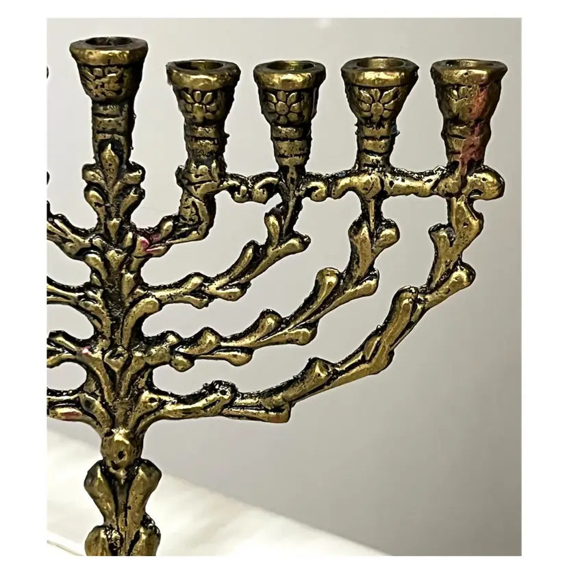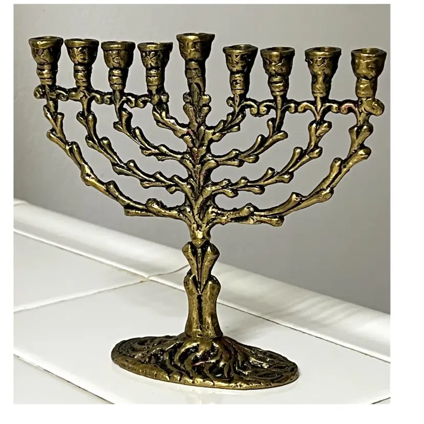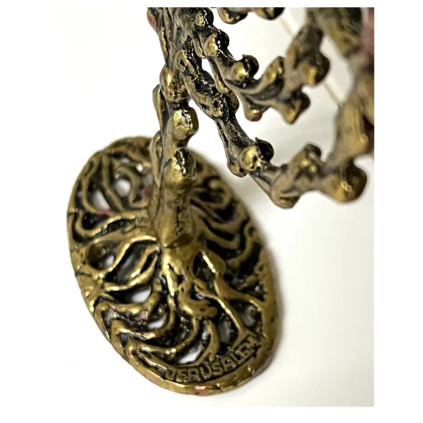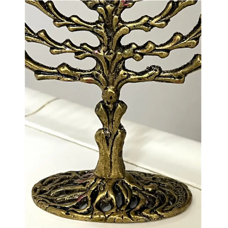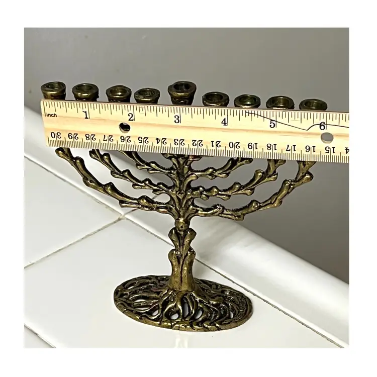 Hanukkah Menorah Brass Chanukah 9 Candle Holder Tree Of Life. Judaism Religion. 5.5 in Height, 6 in Length. Excellent condition