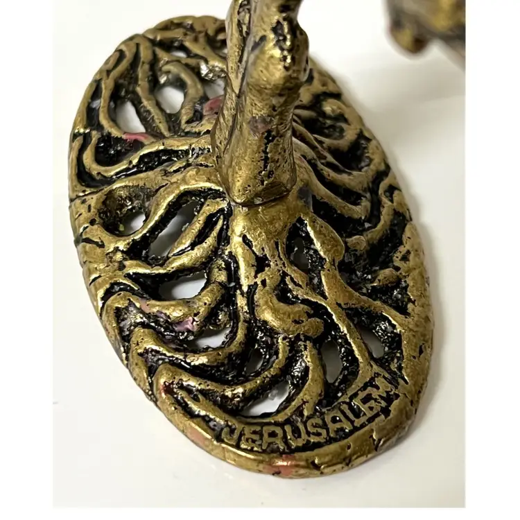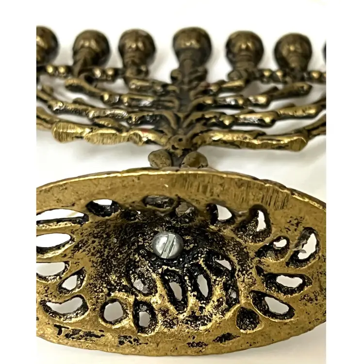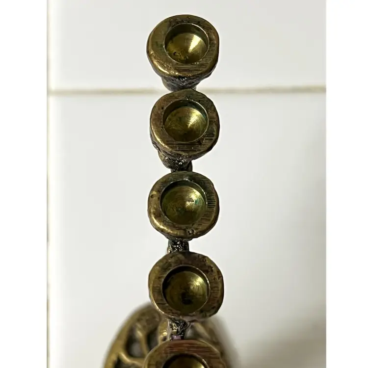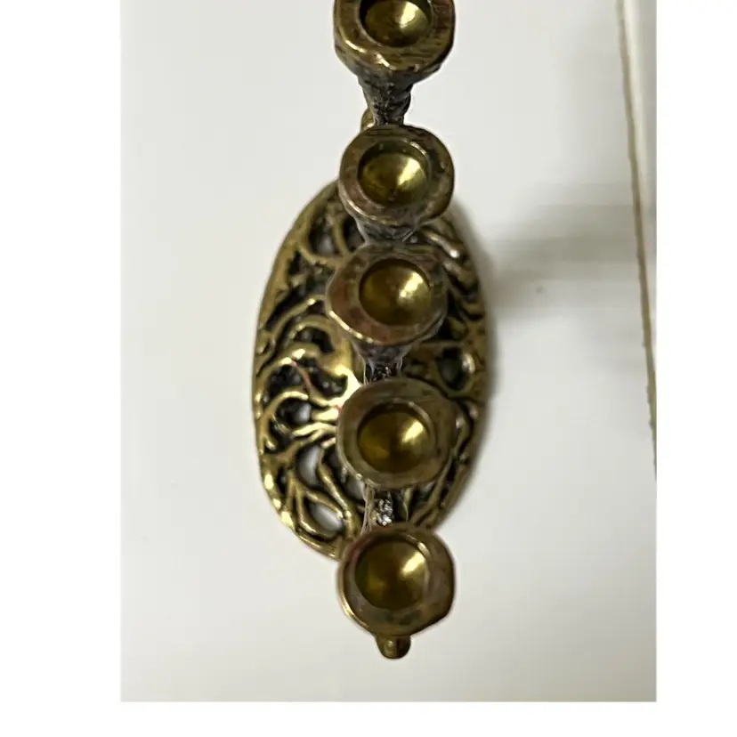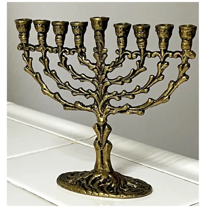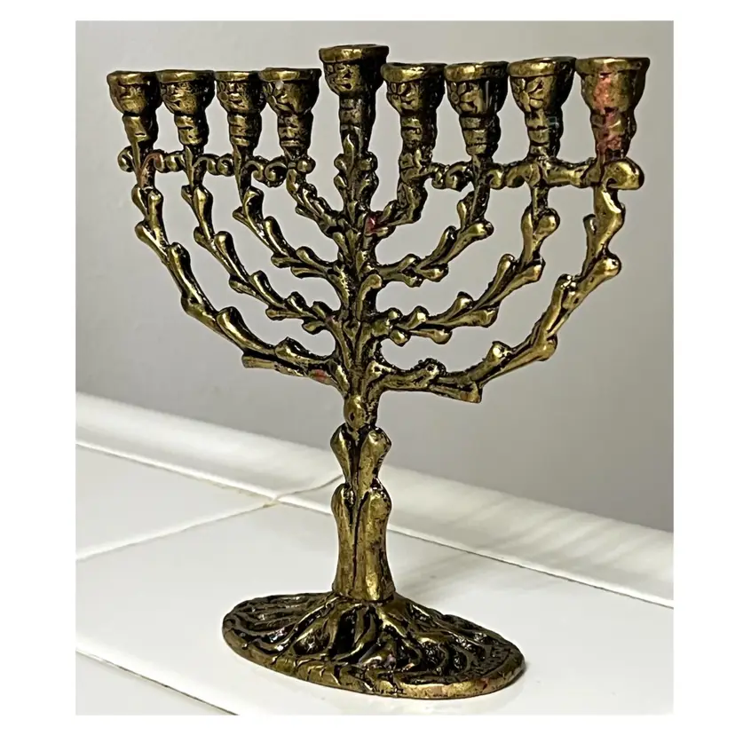 Hanukkah Menorah Brass Chanukah 9 Candle Holder Tree Of Life. Judaism Religion. 5.5 in Height, 6 in Length. Excellent condition