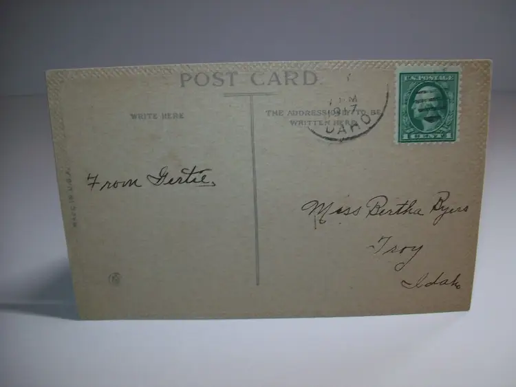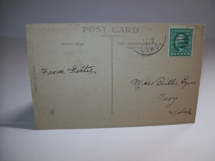 Theme: Art, Fantasy, Holiday, Greetings Unit of Sale: Single Unit Era: Pre-War (Pre-1914) Original/Licensed Reprint: Original Occasion: Birthday Postage Condition: Yes Features: Embossed, Divided Back Subject: Artist Material: Paper Time Period Manufactured: 1900-1919 Type: Printed (Lithograph) Artist: Unknown Custom Bundle: No Size: Standard (5.5 x 3.5 in) Country/Region of Manufacture: Unknown Brand/Publisher: Unknown Number of Items in Set: 1 Year Manufactured: 1917