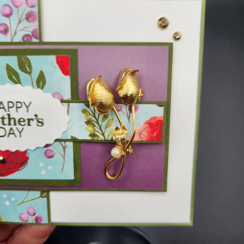 Made with Stampin'Up! papers. Brooch is removable. Will come in a giftable acetate box. 4 1/4 x 5 1/2