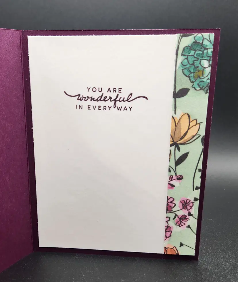 Made with Stampin'Up! papers. Brooch is removable. Will come in a giftable acetate box. 4 1/4 x 5 1/2
