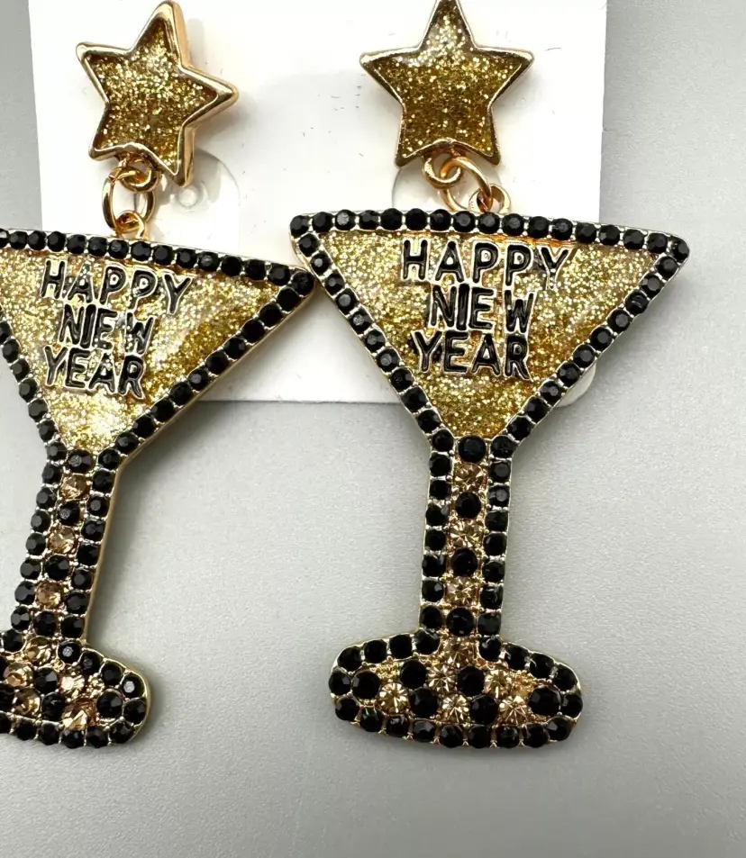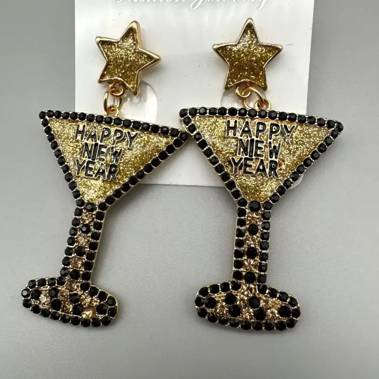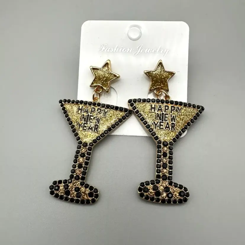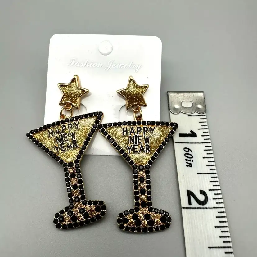 These Martini Glass Earrings, adorned with glittering "Happy New Year" text, offer a festive touch for New Year's celebrations. Each earring features a star dangle, adding a unique charm to your look.