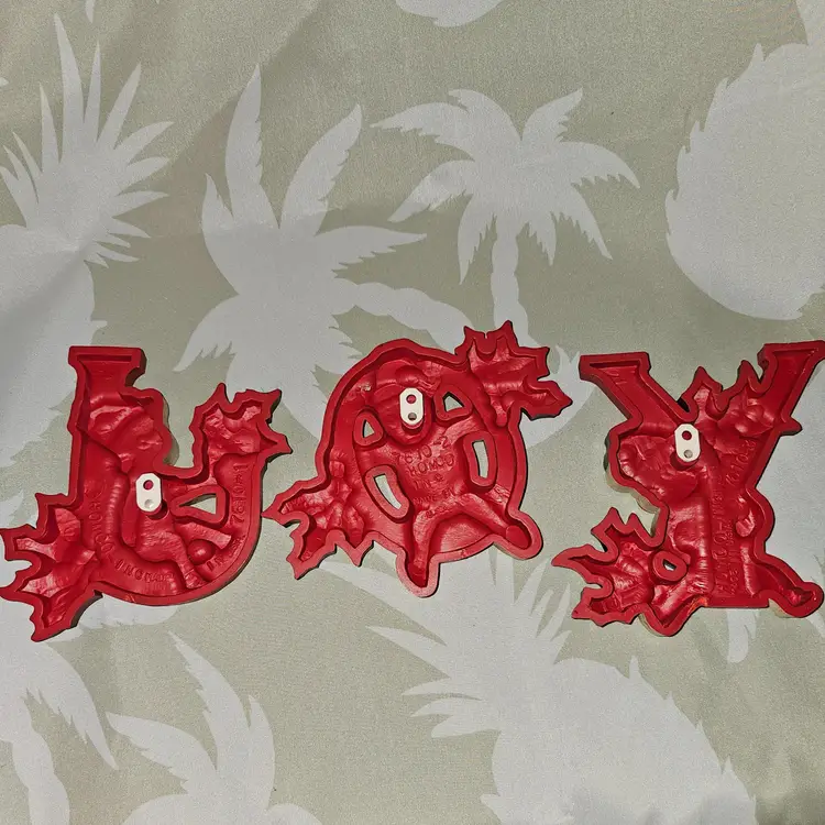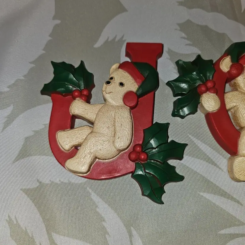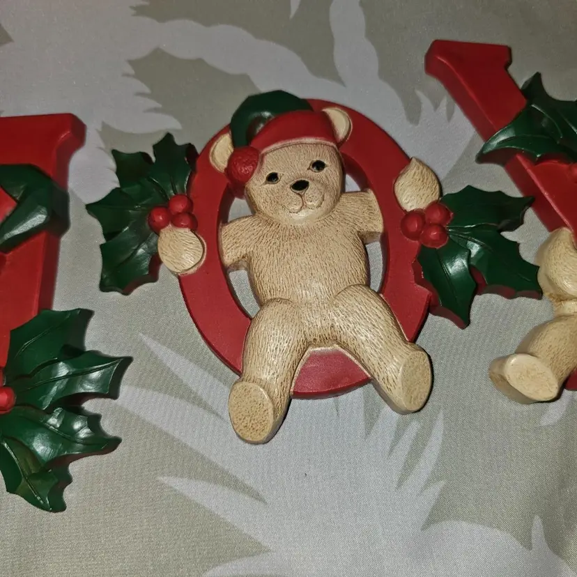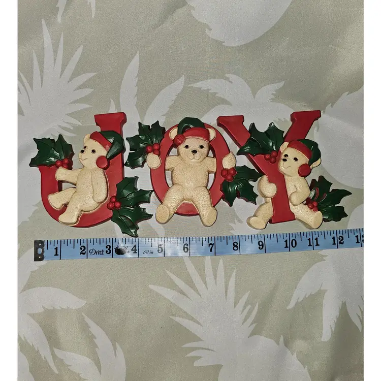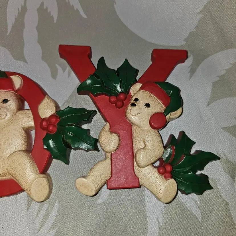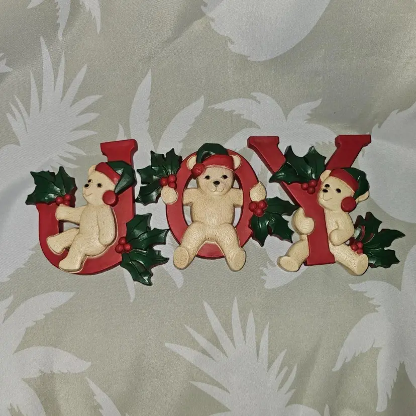 Vintage Hard Plastic Homco Christmas Teddy Bears Wall Decor These are cute little hard plastic Christmas Teddy Bears that spell out the word "JOY" Approx 4 1/2 " tall and 4" wide Each piece is marked Homco and made in the USA Gently pre-loved in great vintage condition