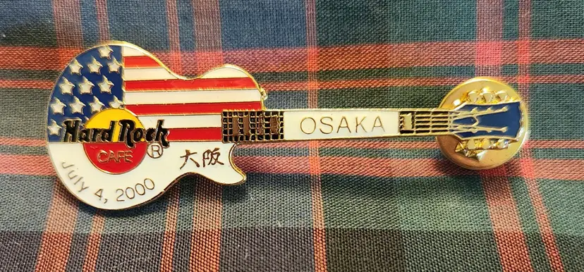 HRC Osaka 4th of July 2000 2 flags guitar pin. No original packaging available. See photos for details.