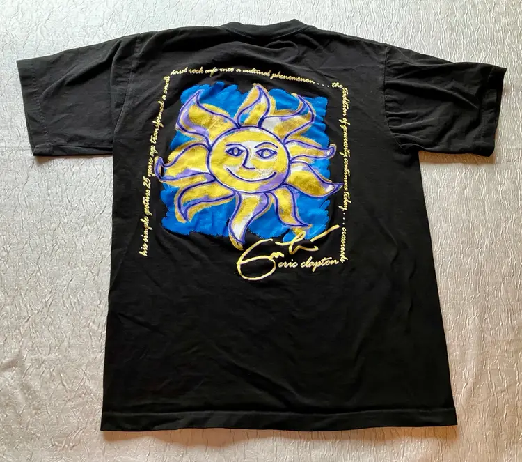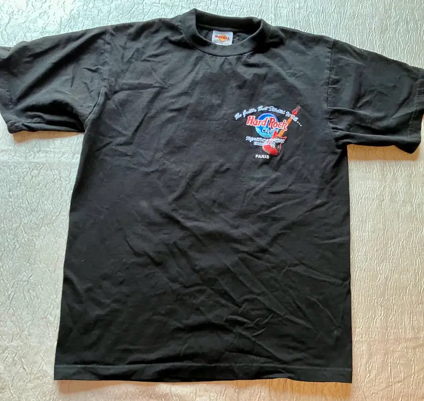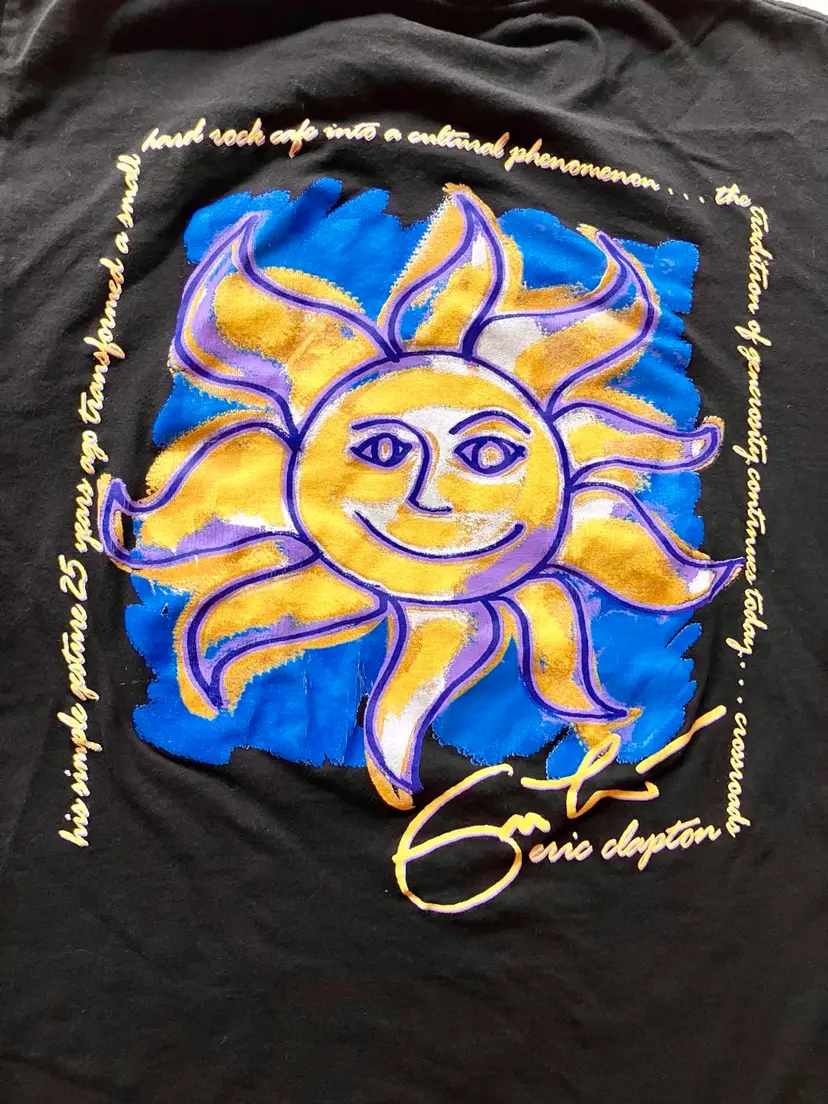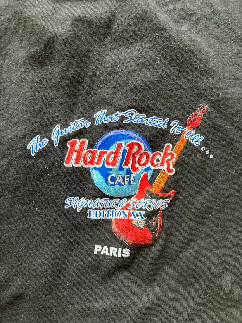 Show off your love for classic guitarist and rock star with this Hard Rock Cafe Paris Signature Series t-shirt. The black tee features double-sided graphics of Eric Clapton, the iconic guitarist, singer, and songwriter whose guitar donation started the Hard Rock music memorabilia collection. The crew neck and short sleeves provide a comfortable fit for both men and women.