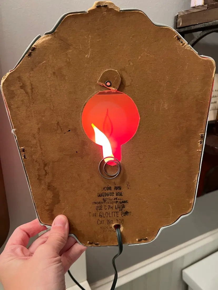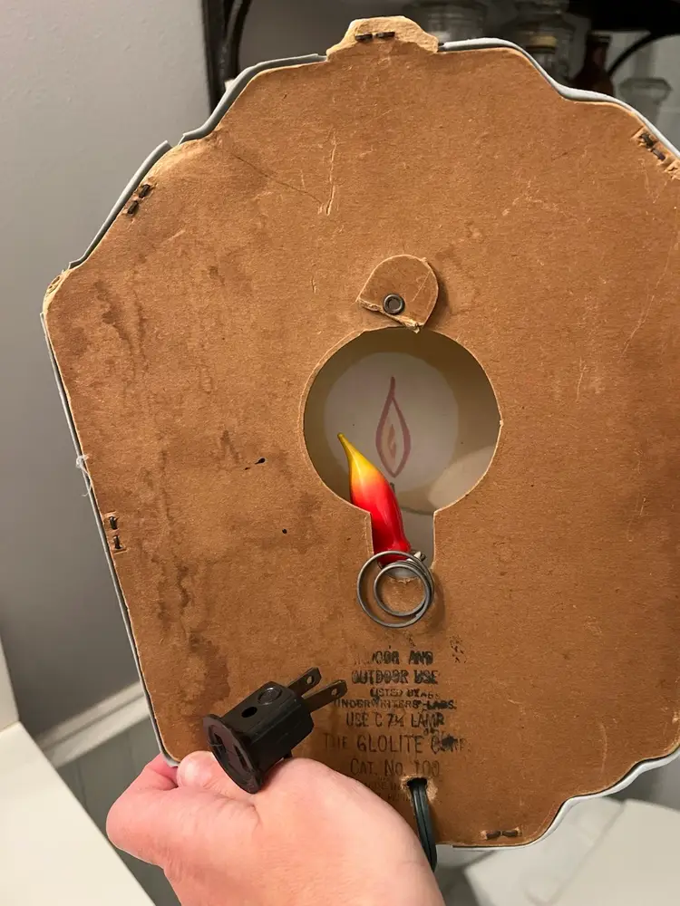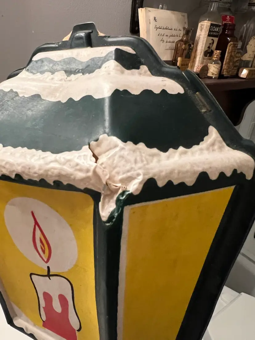 This is harder to find piece, but there are condition issues. It DOES work!!! I did take a photo of the plug- one side is a bit bent, but im sure you could straighten it up (I didnt attempt) There is bending and a cracked area in the front corners - I photographed the areas. Measures 11.5x9.75”