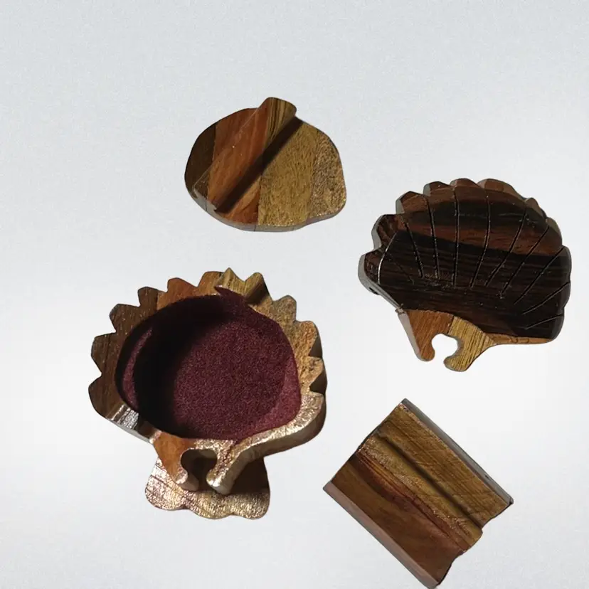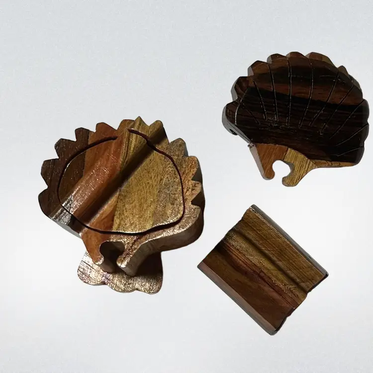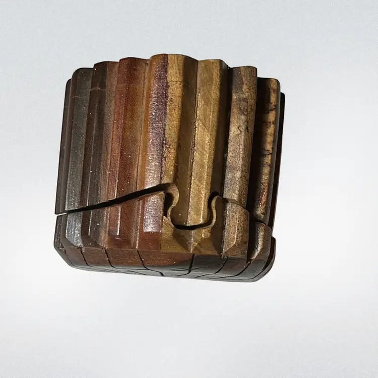 This puzzle box will hold your favorite piece of jewelry, that special love letter or any other trinket. 4 pieces, 3”x3”x 2.25” deep. See photos for condition.