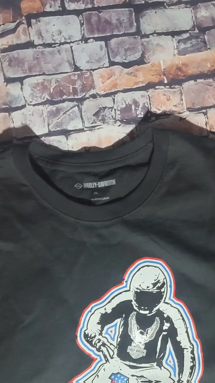 This Harley Davidson Old Timey Rider Motorcycle Biker T-Shirt in size XL is a classic black short sleeve shirt made of cotton knit fabric. It features the iconic Harley-Davidson logo accent and a regular fit crew neck design. Perfect for motorcycle enthusiasts, this shirt is ideal for the summer, fall, and spring seasons. Machine washable for easy care, this T-shirt is a wardrobe staple for any man looking to add a touch of motorcycle style to their outfit.