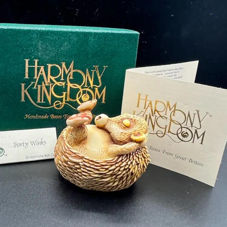 THIS IS A VERY EARLY PIECE THIS SLEEPY HEDGEHOG IS RESTING ON HIS BACK ENJOYING MAYBE THE SUN. HE WAS DONE BY ARTIST PETER CALVESBERT AND RELEASED 3/1/1992 THEN RETIRED 12/1/1996. BEING AN EARLY PIECE THERE IS NOT HIDDEN MOUSE.