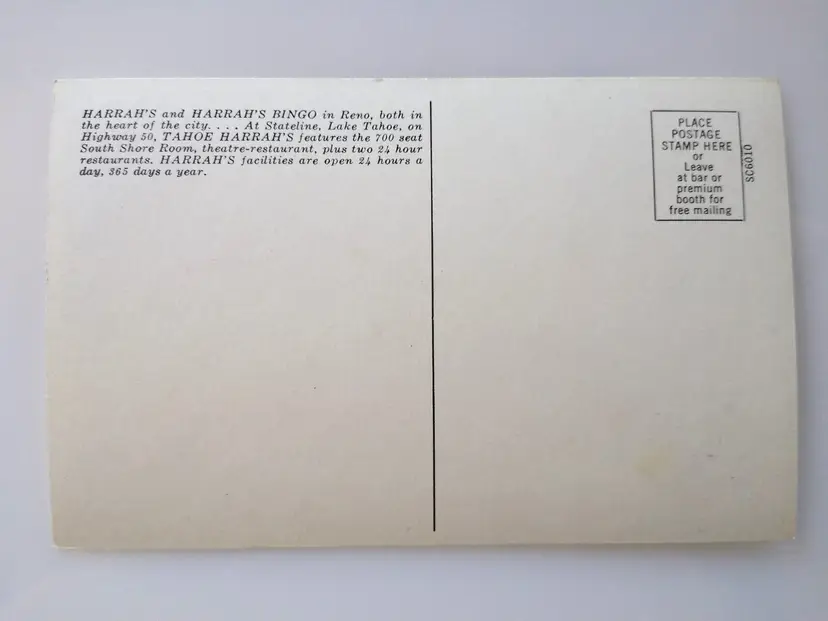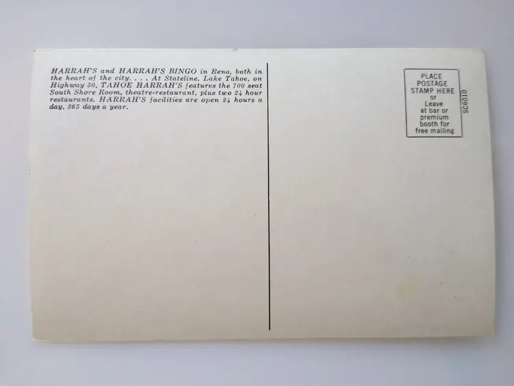 Unit of Sale: Single Unit Number of Items in Set: 1 Occasion: Any Signed: No Size: Standard (5.5 x 3.5 in) Year Manufactured: 1955 Material: Paper City: Reno Original/Licensed Reprint: Original Brand/Publisher: Unbranded Subject: Casino Type: Printed (Lithograph) Continent: North America Era: Photochrome (1939-Now) Country: United States Region: Nevada Theme: Cities & Towns, Tourism, Casino, History, Slot Machines, Table Games, Gambling Hall, Saloon, Dragon Features: Chrome Time Period Manufactured: 1950-1959 Country/Region of Manufacture: United States Postage Condition: Unposted