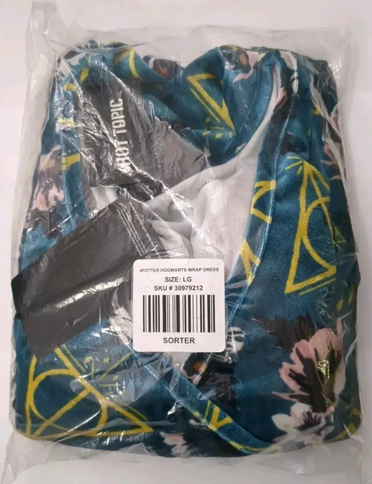 Harry Potter Deathly Hallows Floral Velvet Dress Large - New in plastic