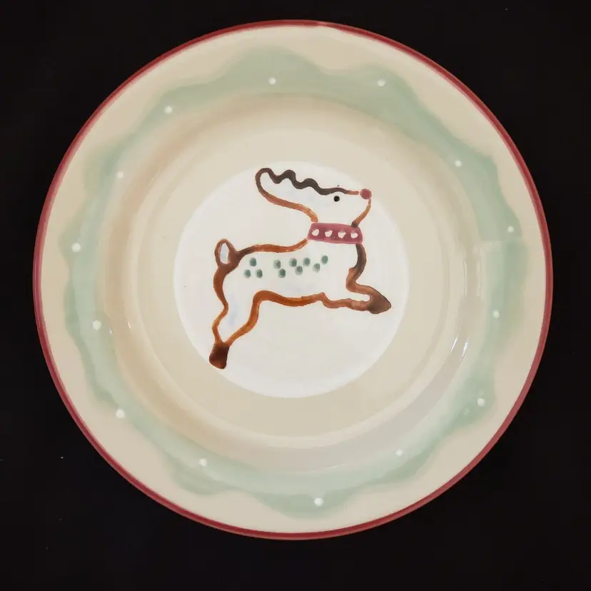 Brand: Hartstone Type: Salad Plate Shape: Round Occasion: Christmas Color: Multicolor Set Includes: Plate Set Material: Stoneware Production Technique: Pottery Country/Region of Manufacture: United States Vintage: Yes (586)