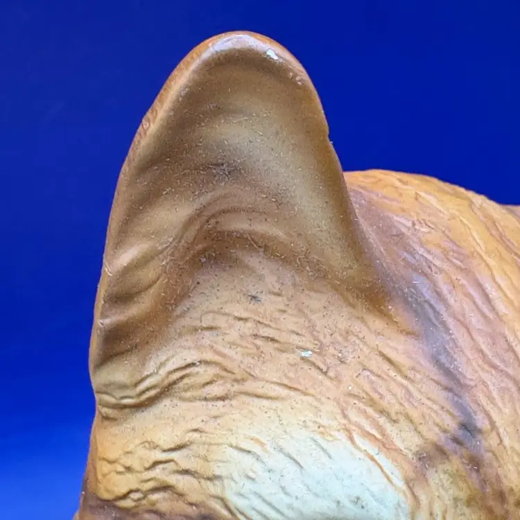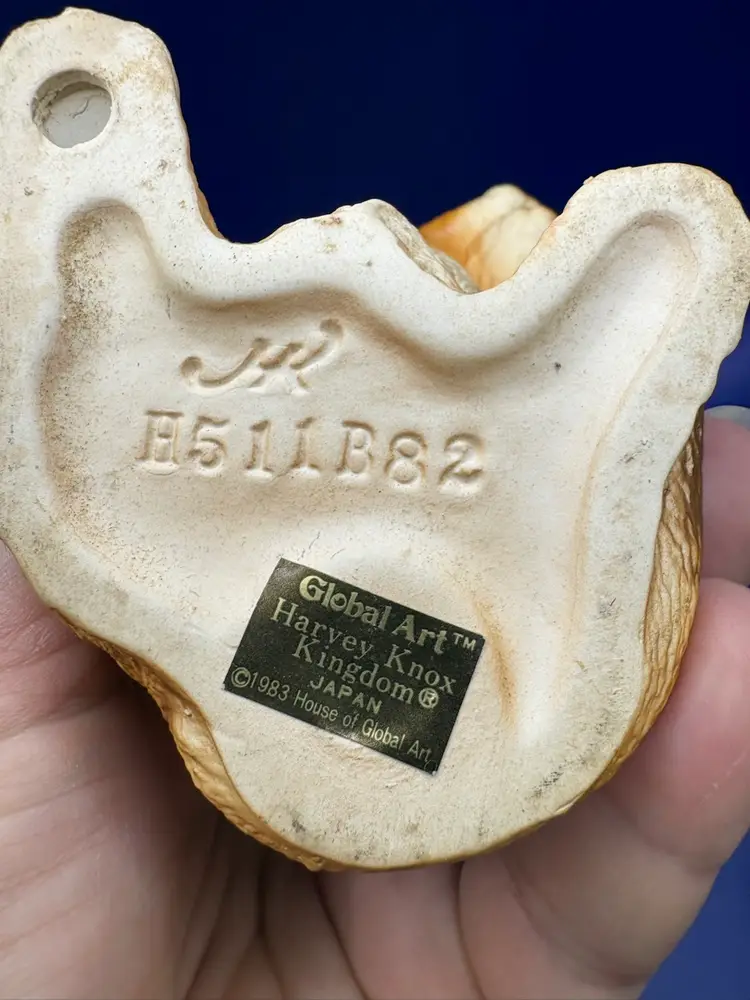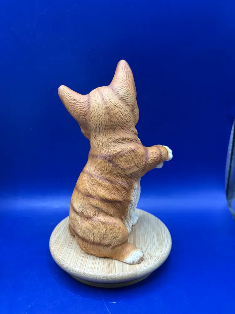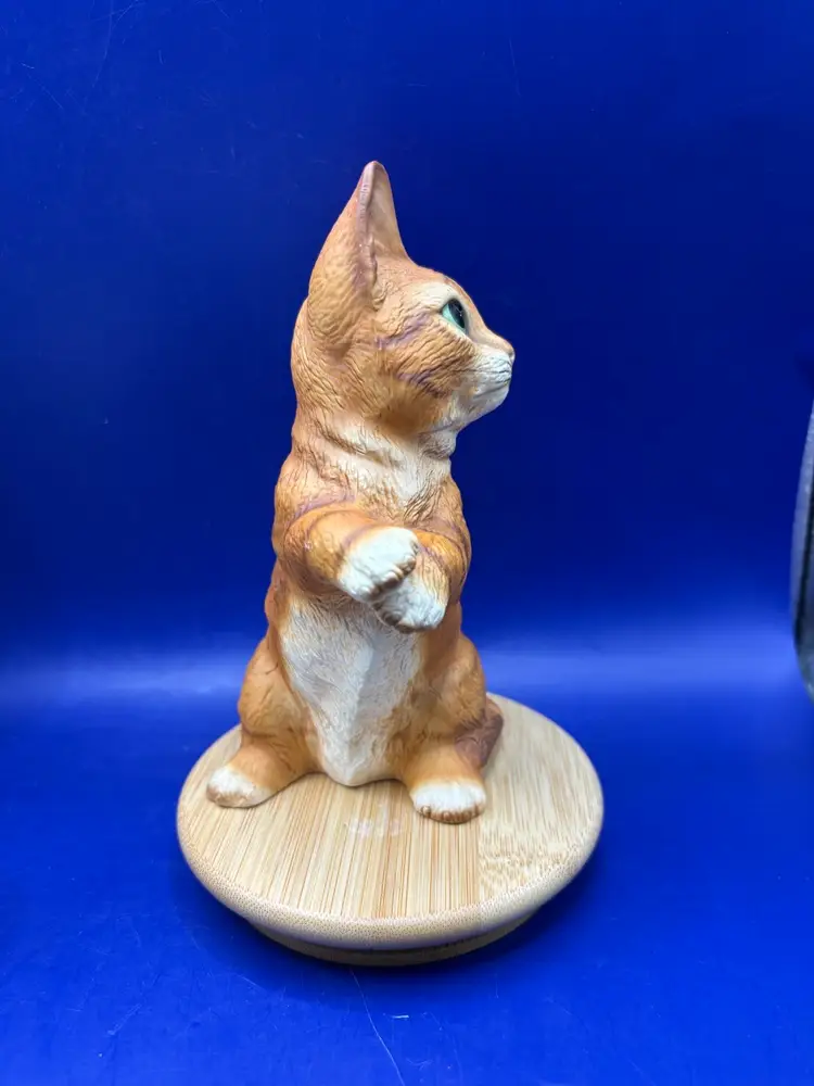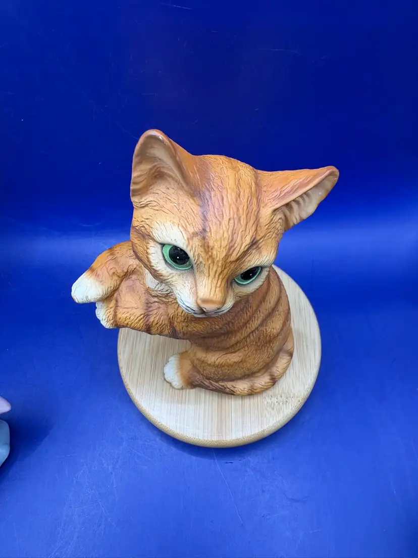 Harvey Knox Kingdom House of Global Art Orange tabby cat figurine with green eyes 1983 Measures 6 inches tall by 3 1/2 inches at widest No chips or cracks..slight scratch on ear see photo